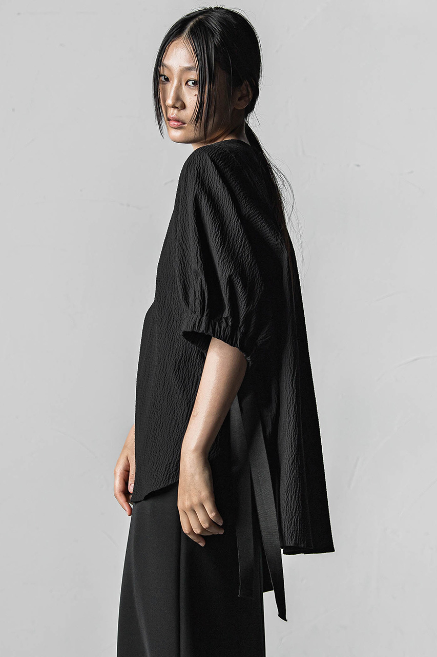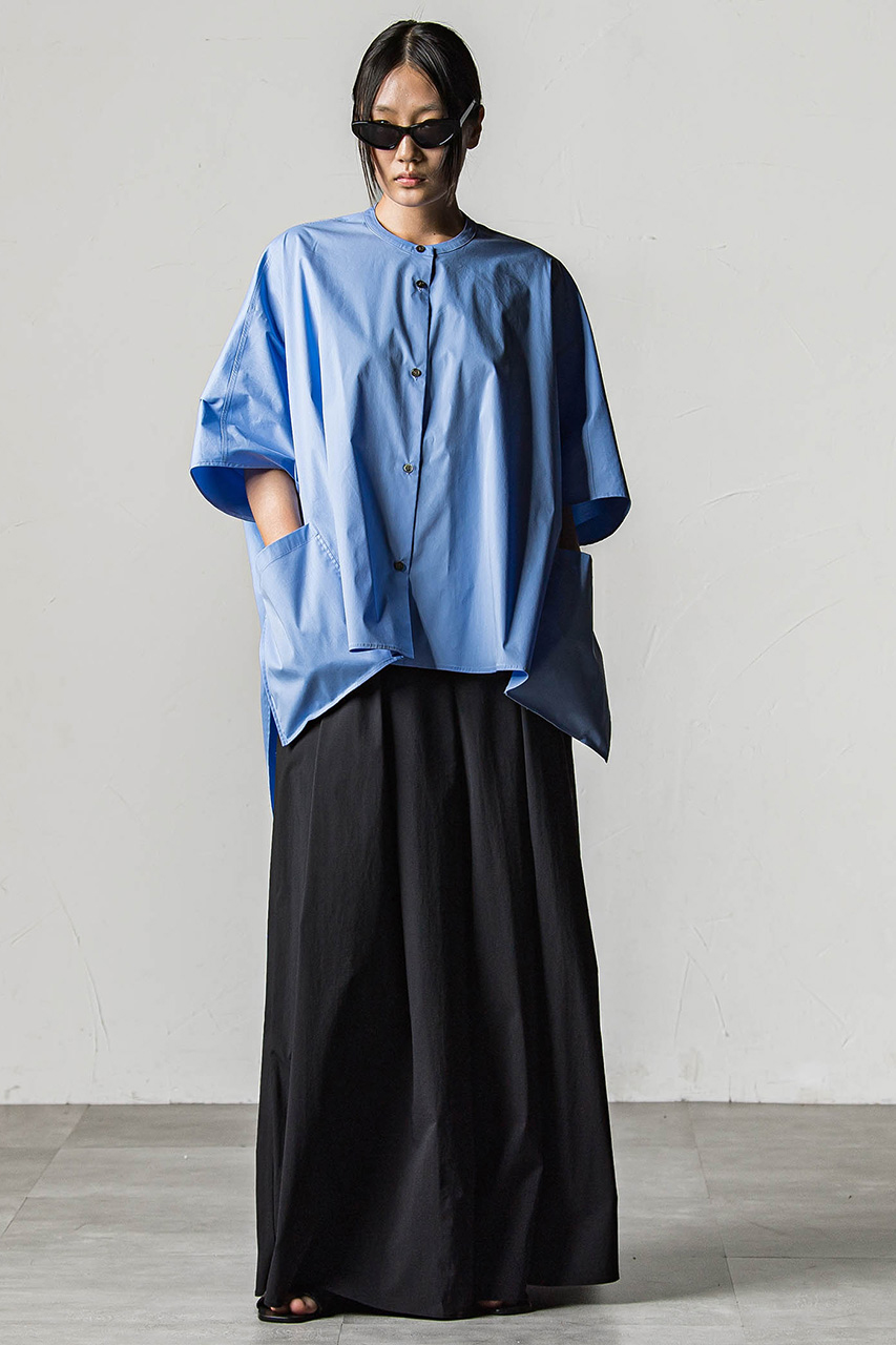 スクエアをデザインディティールに、スッキリとした直線がミニマルな印象のサマーブラウスに仕上げました。