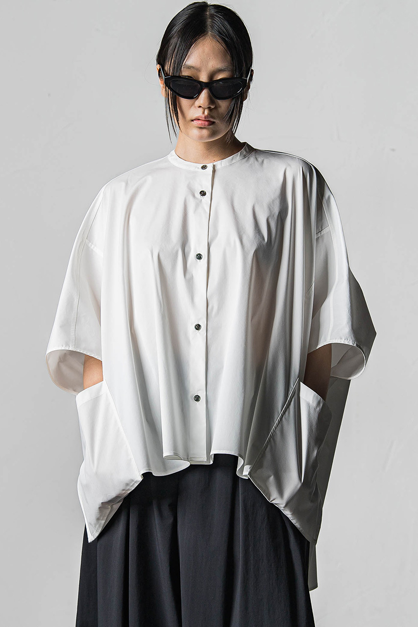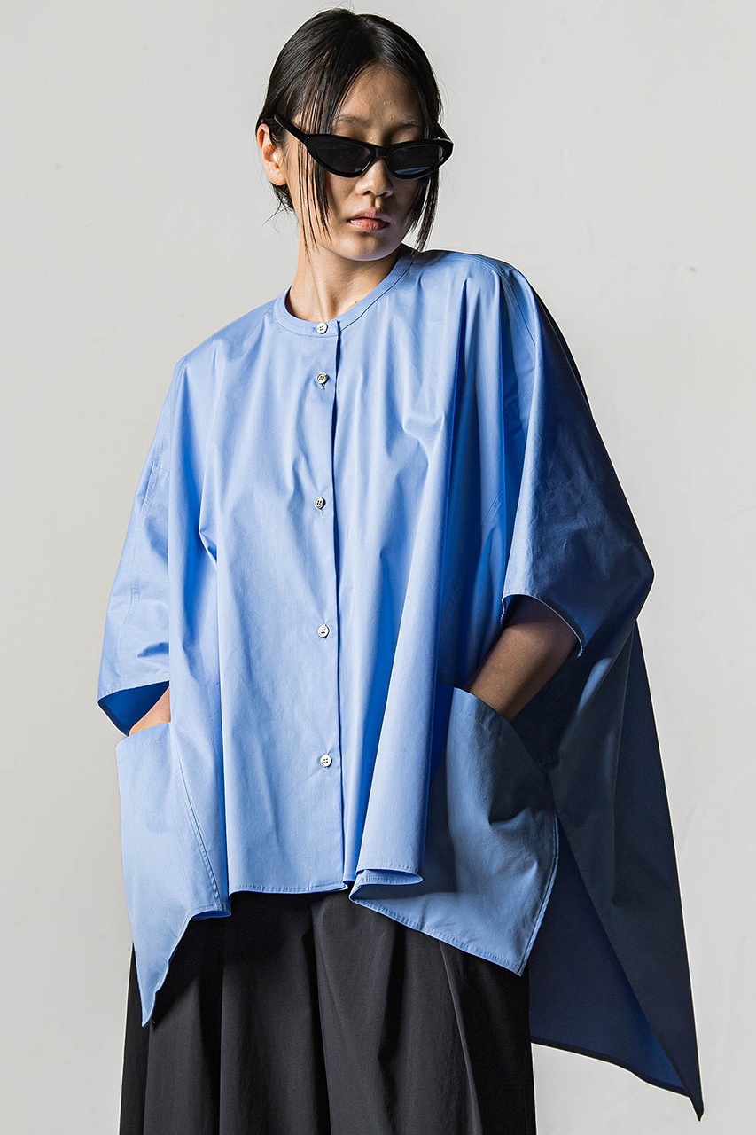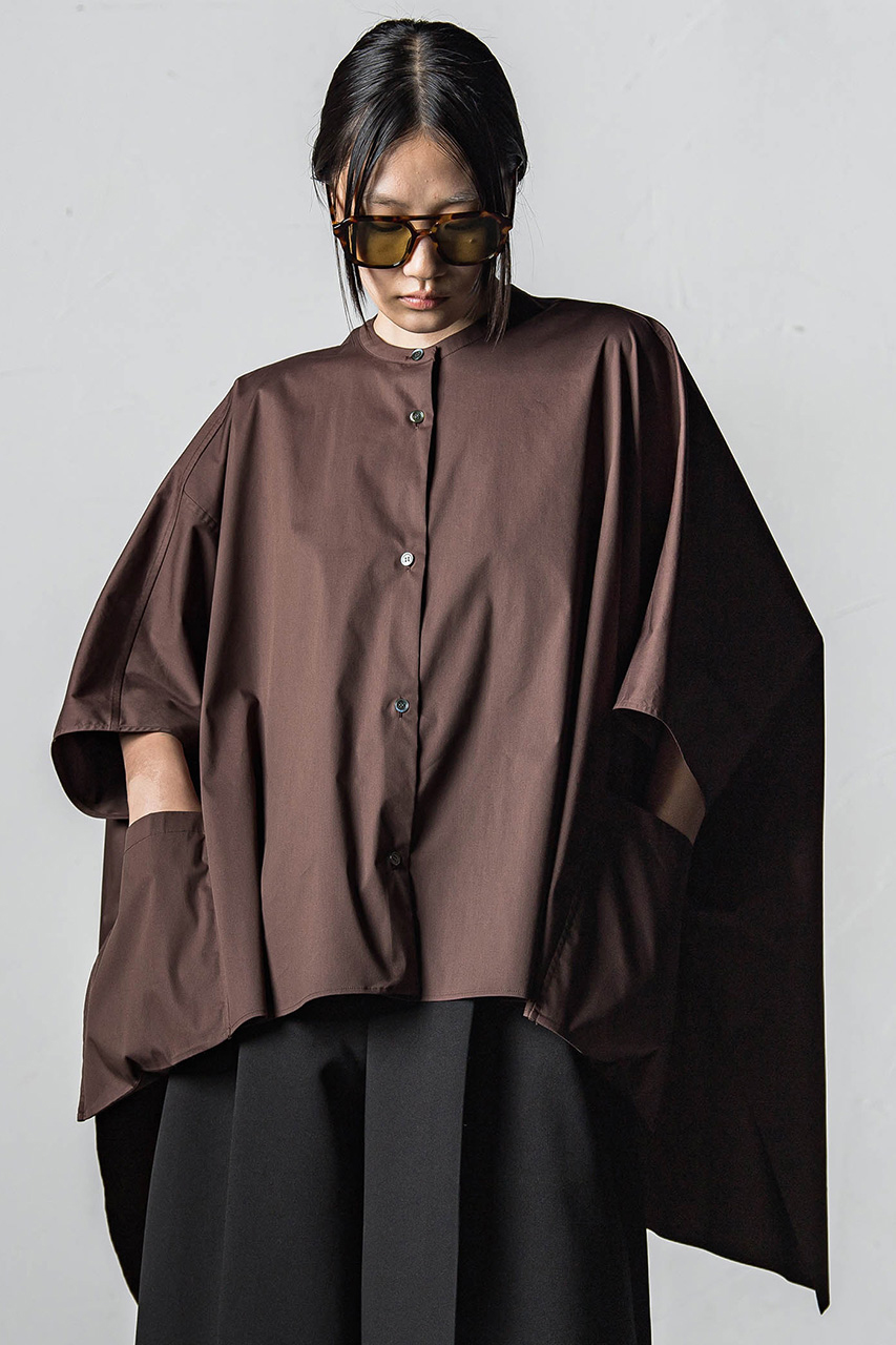 ポンチョの様なリラクシーなシルエットが特徴の抜け感のあるブラウス。
