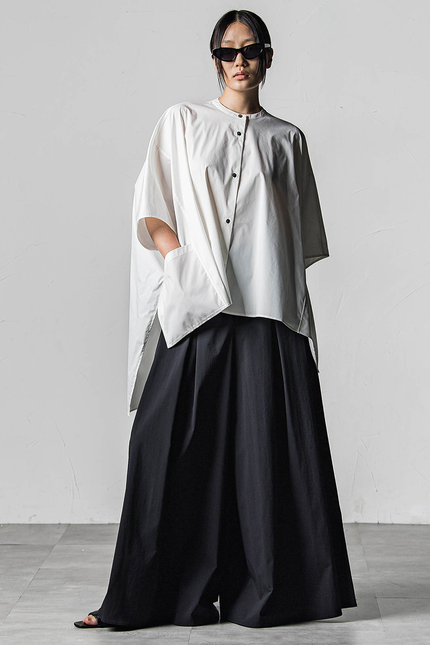 ハイカウントなコットンのハリ感がモードに寄せた印象で着こなして頂けます。