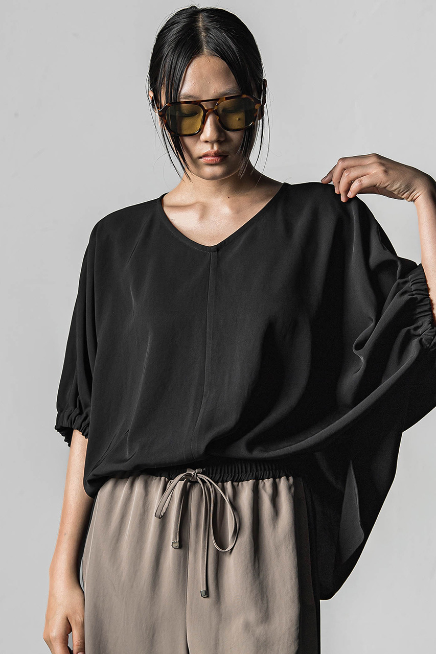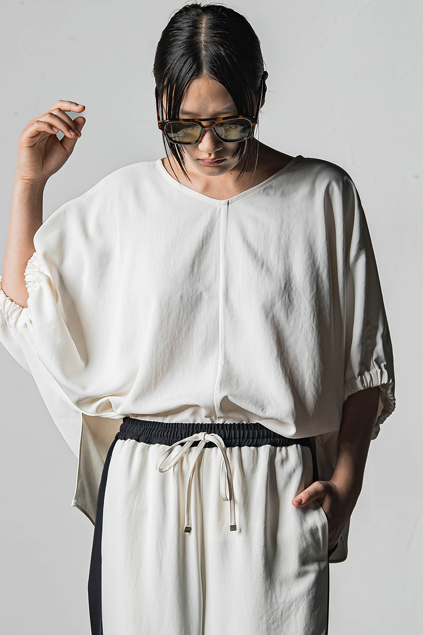 ラウンドネックとVネックの2WAYで着用可能なリラクシーなサマーブラウス。