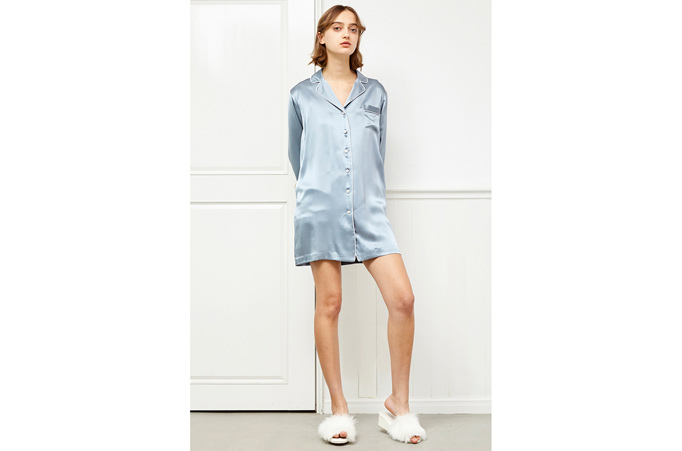 >>シルクパジャマ/長袖トップス ブラック