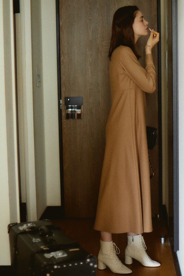 デニムやレギンスを合わせたり、ドレスにはタートルネックを重ねたりして、そのまま外出もできるユースフルなワンマイルウェアです。