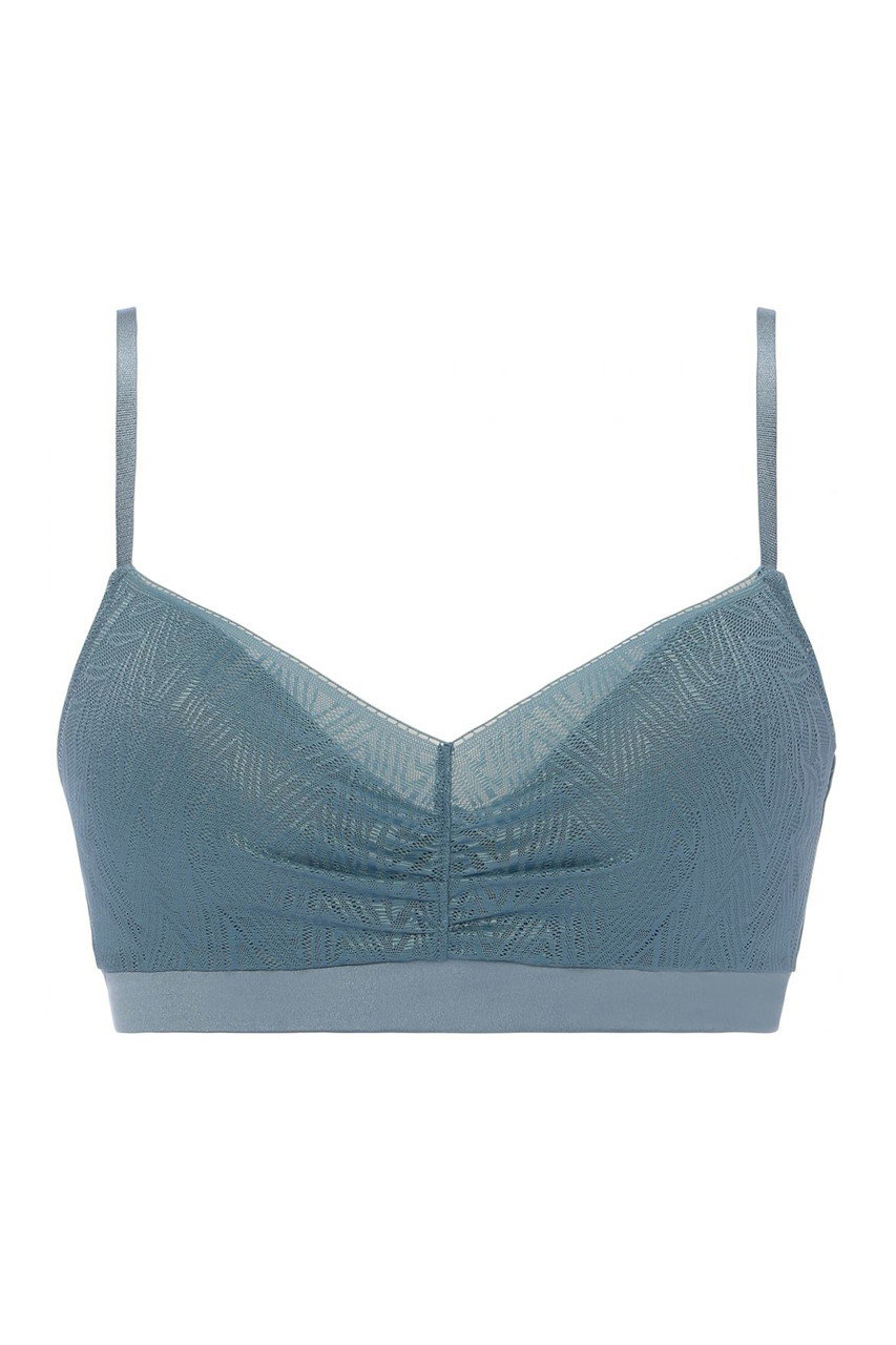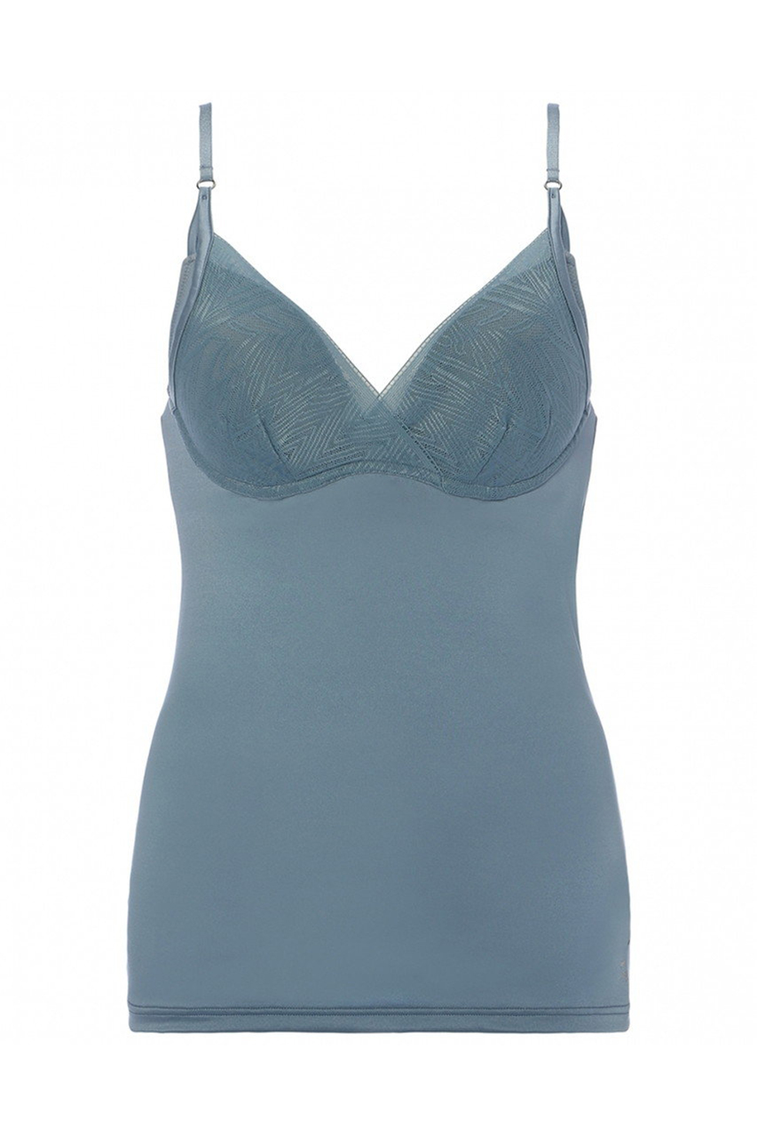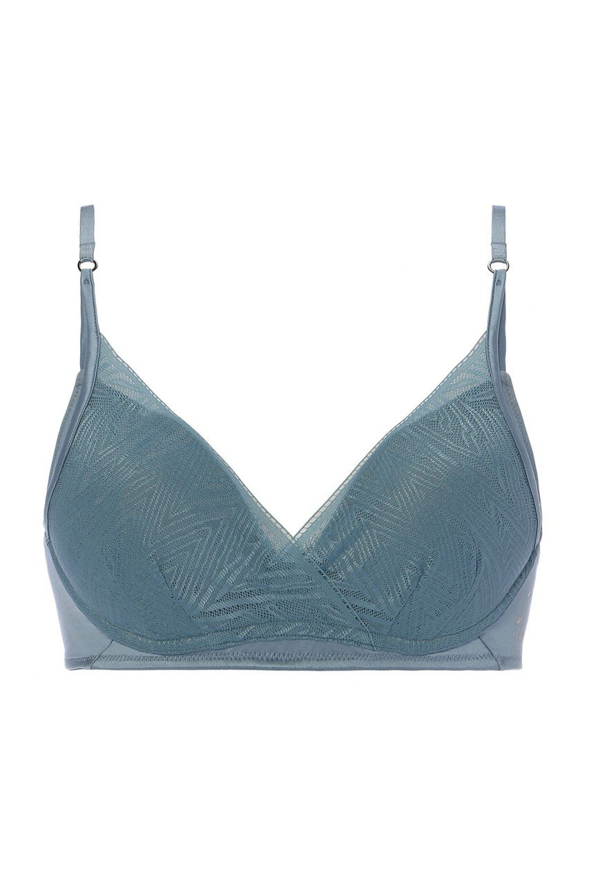 艶のある幾何柄のレースとサテンのコントラストが美しい「エス バイ スロギー」シャインから、新色プロヴィンシャルブルーが登場します。幾何柄レースとセミマットな光沢のサテン素材が、洗練された美しさを表現。なめらかで伸びの良いストレッチサテンを使用しているので快適な着けごこち。軽く、通気性の良いスペーサーカップを使用しています。