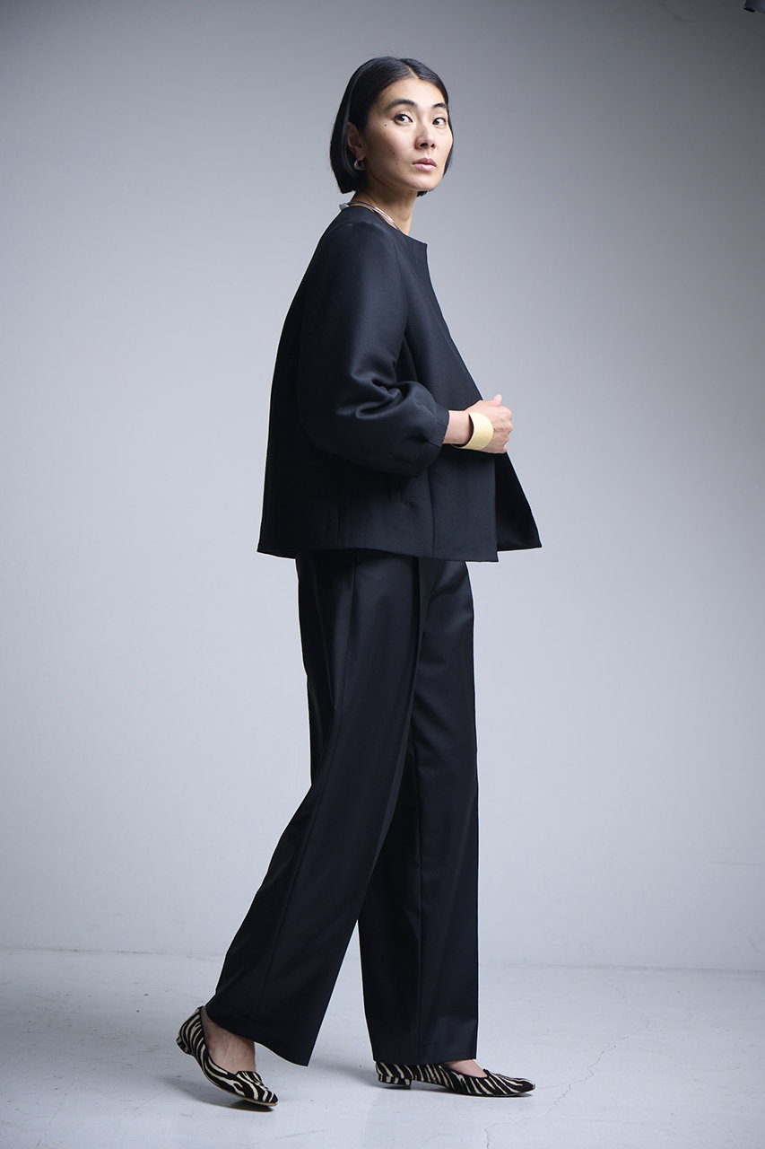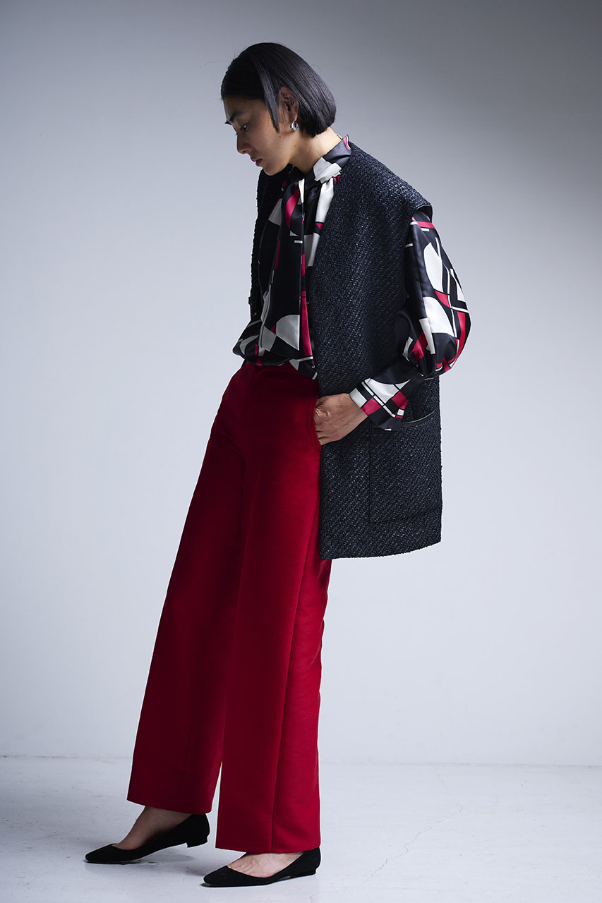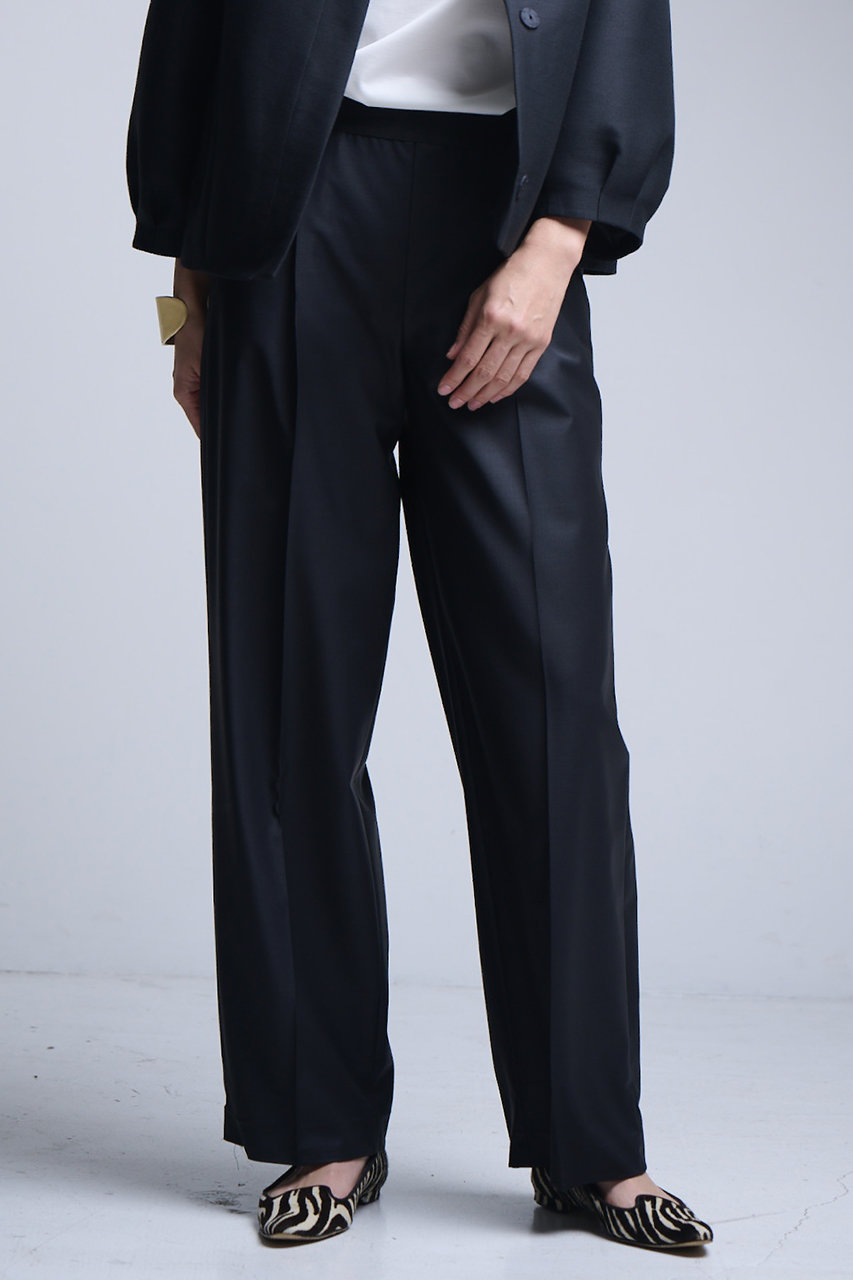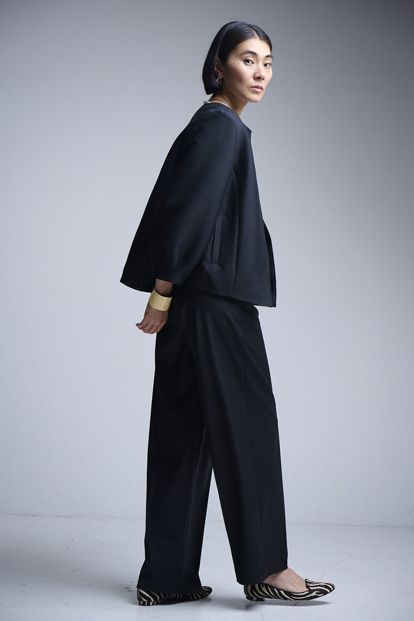 ラフに着用できてきれいめな大人コーデが叶う、頼れるワイドパンツ。適度な厚みと光沢のあるダブルクロスが上品で、センタープレスがよりきちんと感をキープ。腰まわりに余裕のあるテーパードシルエットが動きやすさと洗練ムードを両立。オフィスからオケージョンまで外せない1本になりそう。 コーディネートのワンポイントとして、トレンドのレッドもおすすめ。