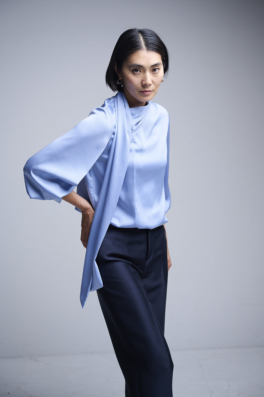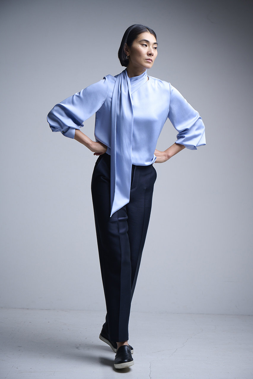 マットな光沢&とろみ感のあるサテン素材で仕上げたアイテム。ゴム仕様のウエストとストレッチ素材で着心地も抜群。シンプルなデザインで合わせるものを選ばずシーズンレスで着まわせるのも◎。ワンピースなどとのレイヤードスタイルにも大活躍してくれそう。お揃いのブラウスとのセットアップもおすすめ。