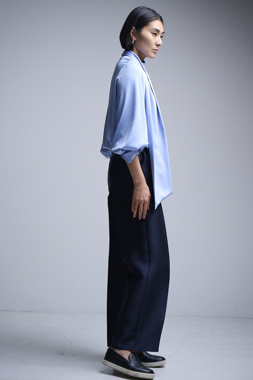 程よいバギーシルエットが大人エレガンスな雰囲気をもたらすイージートラウザーズ。トリアセ生地を使用して、軽くしなやかなさらっとした肌触りと上品な光沢を叶えてくれる。ウエストゴム仕様でリラクシーに着用でき、きちんと感も忘れずキープできる1本は、合わせるアイテム次第で表情を変え、幅広い場面に重宝。落ち着いたラベンダーカラーはコーディネートのアクセントに活躍しそう。