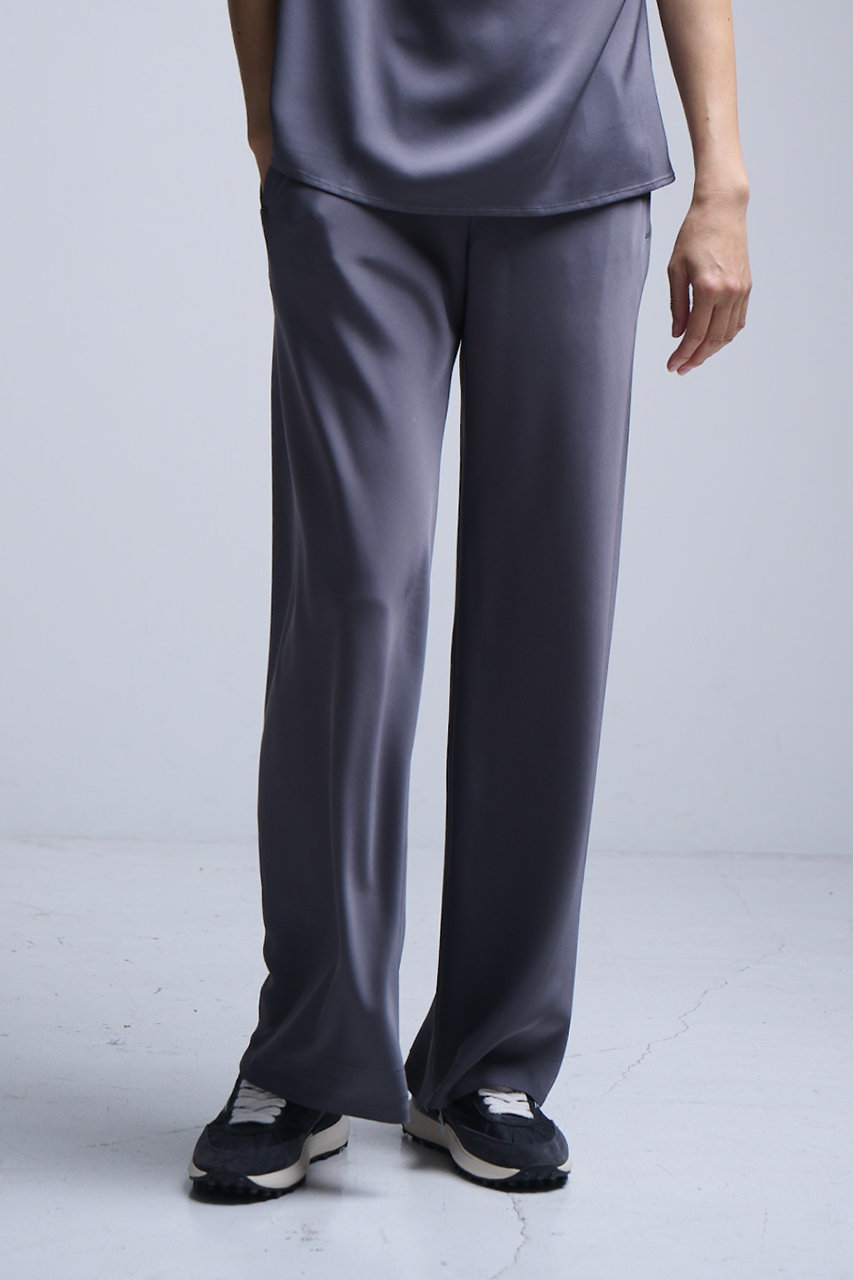 ラフにはけてどんなシーンにも浮かない上品顔なワイドパンツ。センタープレスを施したストレートシルエットや、なめらかな肌触りと美しい光沢を備え、きれいめな大人コーディネートに更新。オフィスから日常の着こなしまで幅広いシーンに活躍必須。トレンドカラーのダークブラウンもおすすめ。