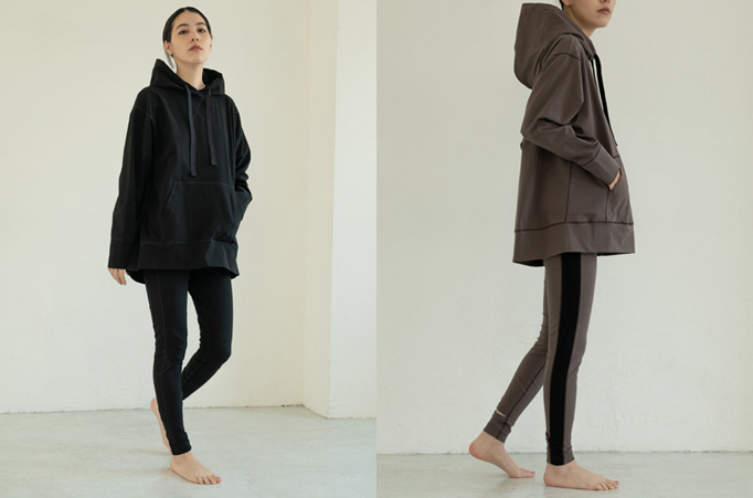 “日常のファッションに取り入れる機能性ウェア”をコンセプトにスタート。コンフォートな着心地でありながら、アクティブなシーンにも対応できるラインです。ヨガウェアなどのパターンや伸縮性のある生地を使用し、ルームウェアやストレッチウェアとして着用できる、新しいウェアラインです。