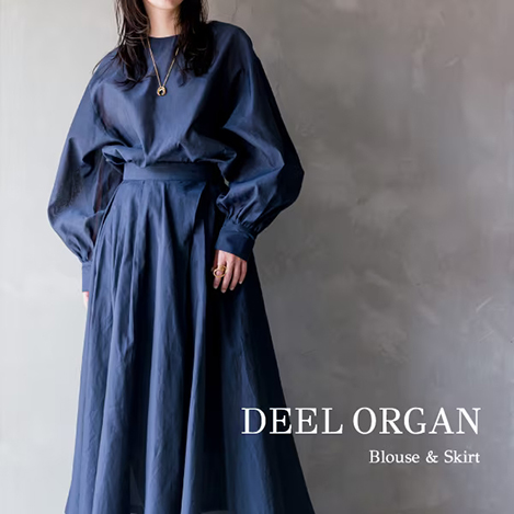 セットアップで着用可能! エレガントなディールオーガンスカート&ブラウスが入荷