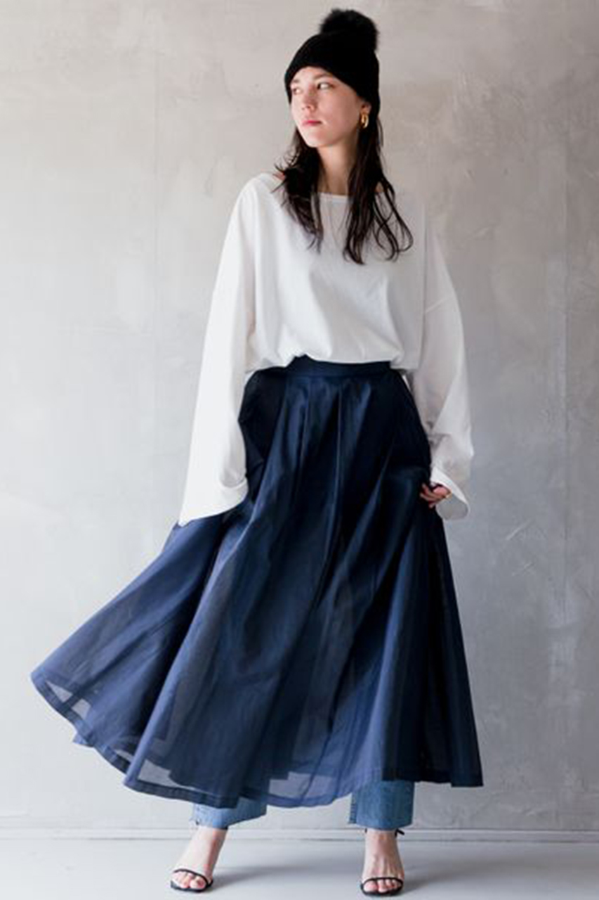 夏から秋へのスイッチアイテムとしておすすめなディールオーガンブラウス&スカートをご紹介。