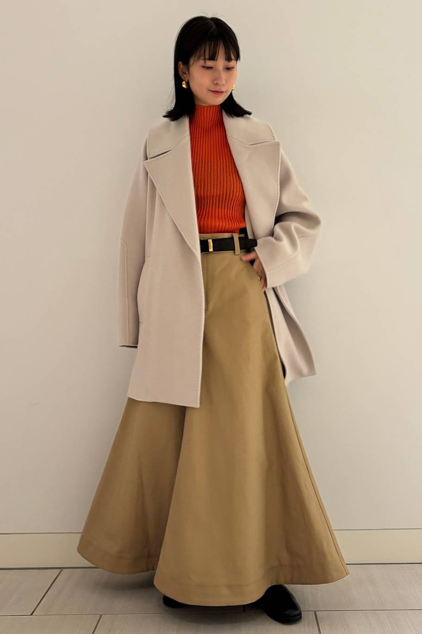ロングスカートは、フロントにフレアを出しているので、歩く時の揺れる動きが美しい1枚です。
