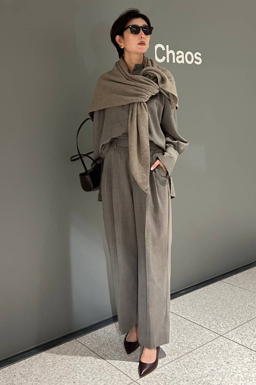 クラシカルとモードな印象を併せ持った秋冬ムードのあるシャツと、季節問わず使えるきれいめ万能パンツのセットアップ!