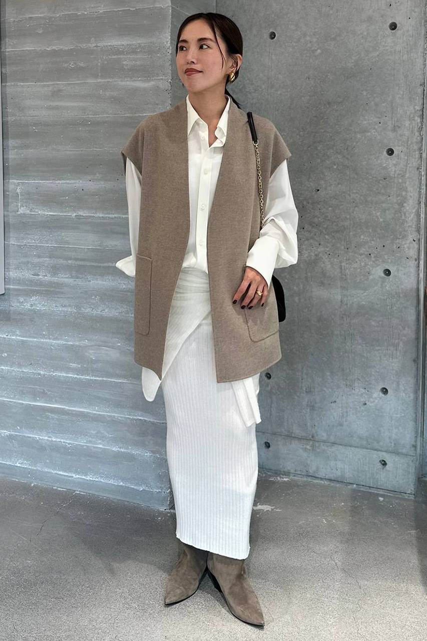 モードな合わせだけでなく、カジュアルに合わせても上品なスタイリングに仕上がります。