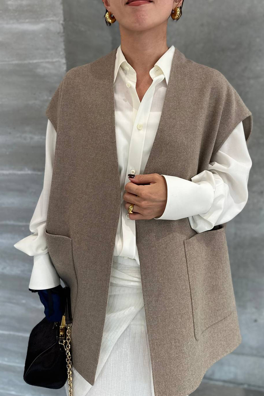 上質なリバー素材を使用した極上ベストは、素材を生かすためミニマムに作成。裏がつかない一重仕立てで軽やかな着心地です。