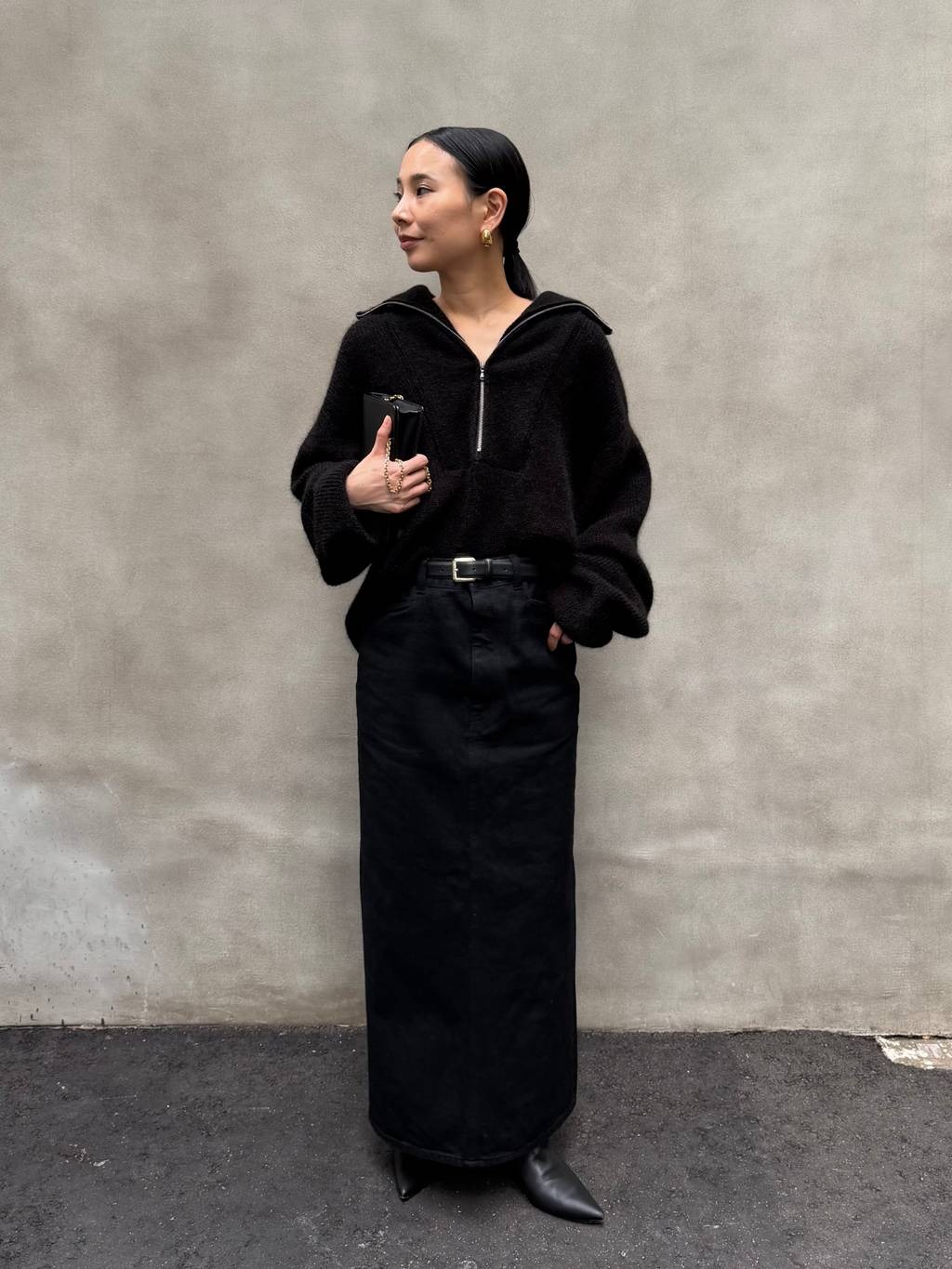 深めのバックスリットは、ロングブーツの合わせも決まりやすいです。