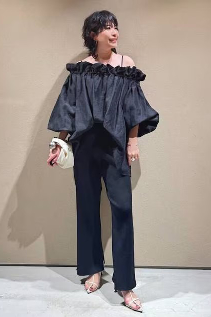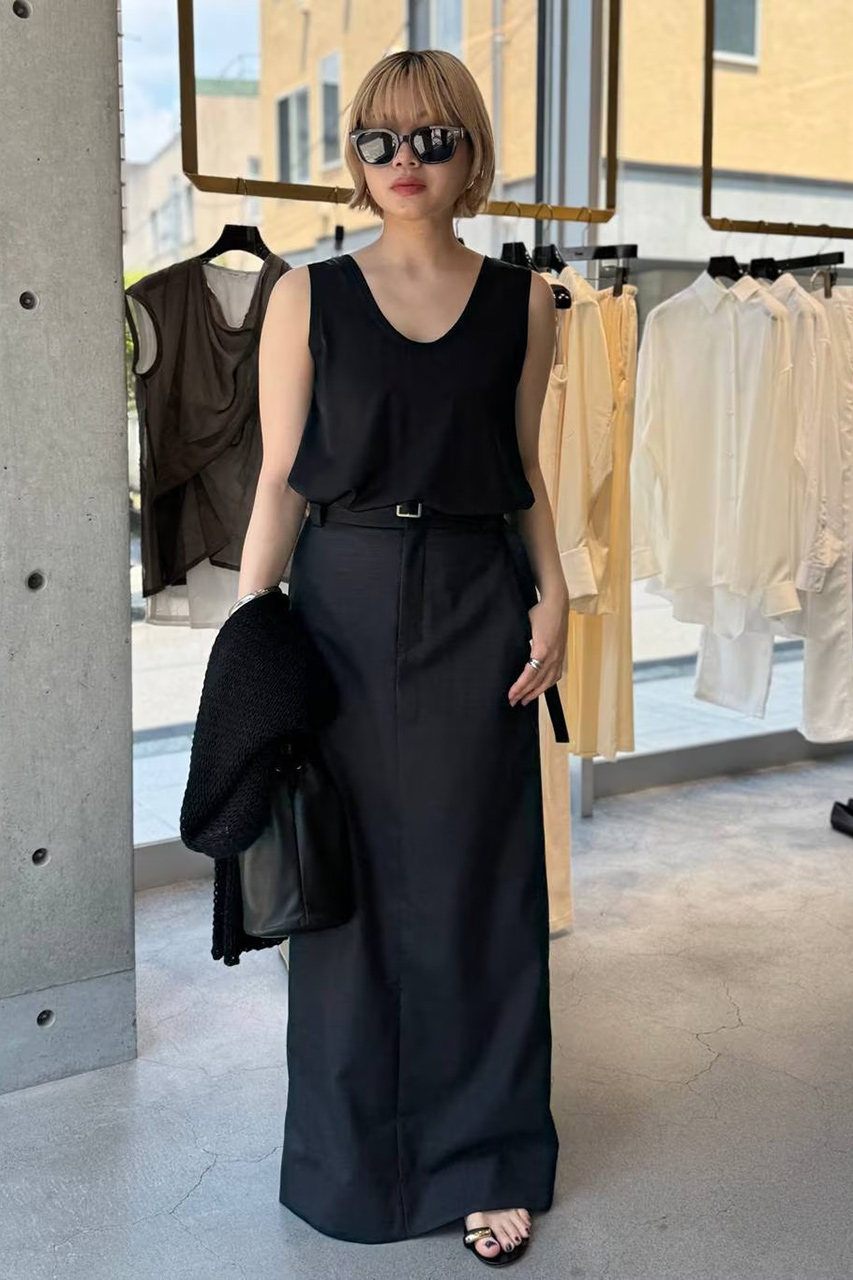 18.5匁のストレッチジョーゼットサテンを使用した、上品で涼やかなノースリーブトップス。襟ぐりやアームホールの断ち切りフリルが華やかさを演出し、さらりと一枚で決まります。上品な光沢とドライな肌触りを兼ね備え、肌離れが良く速乾性にも優れているため、真夏でも不快感なく快適。高いストレッチ性で着心地もストレスフリーです。自宅で手洗い可能な利便性も魅力。オンオフ問わず、夏の装いをエレガントに格上げします。