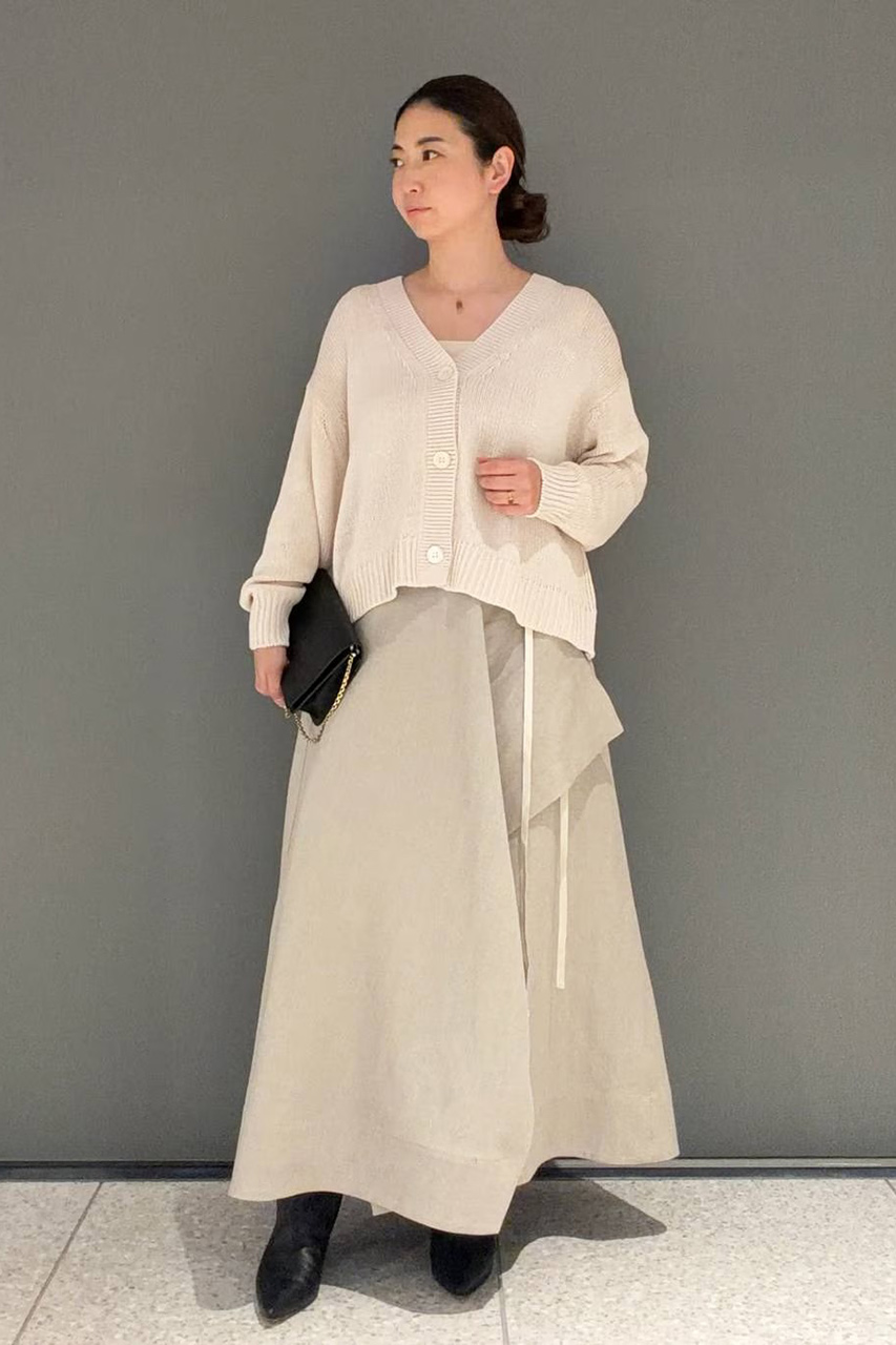 イタリアの老舗糸を用いた、極上のマルベリーシルクとオーガニックコットンの混紡シリーズです。もっちりとした贅沢な肌触りとシルクの艶が、大人の日常に品格を添えます。デコルテを美しく見せるVネックニットと、ショールのように優雅なカーディガンは、どちらも程よい厚みで体のラインを拾わず安心。手洗い可能で、季節を問わず長く楽しめるのも魅力です。肌に溶け込むような心地よさと、洗練された着こなしをぜひお楽しみください。