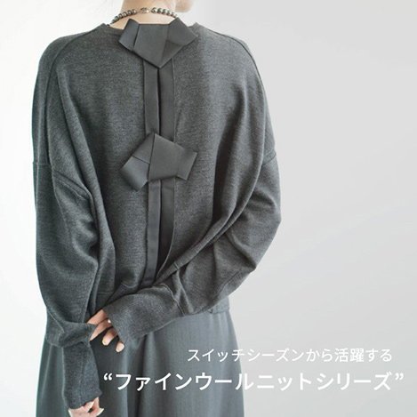 美しいハイゲージの滑らかな肌触りが魅力のファインウールニット。程よい厚みで季節の変わり目からすぐに着ていただきやすく、今のスイッチシーズンにぴったりなアイテムです。