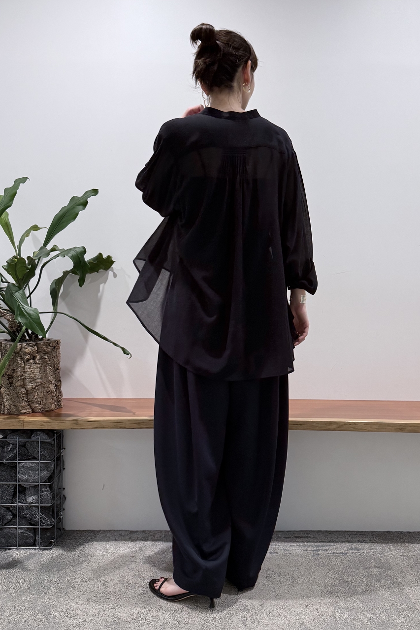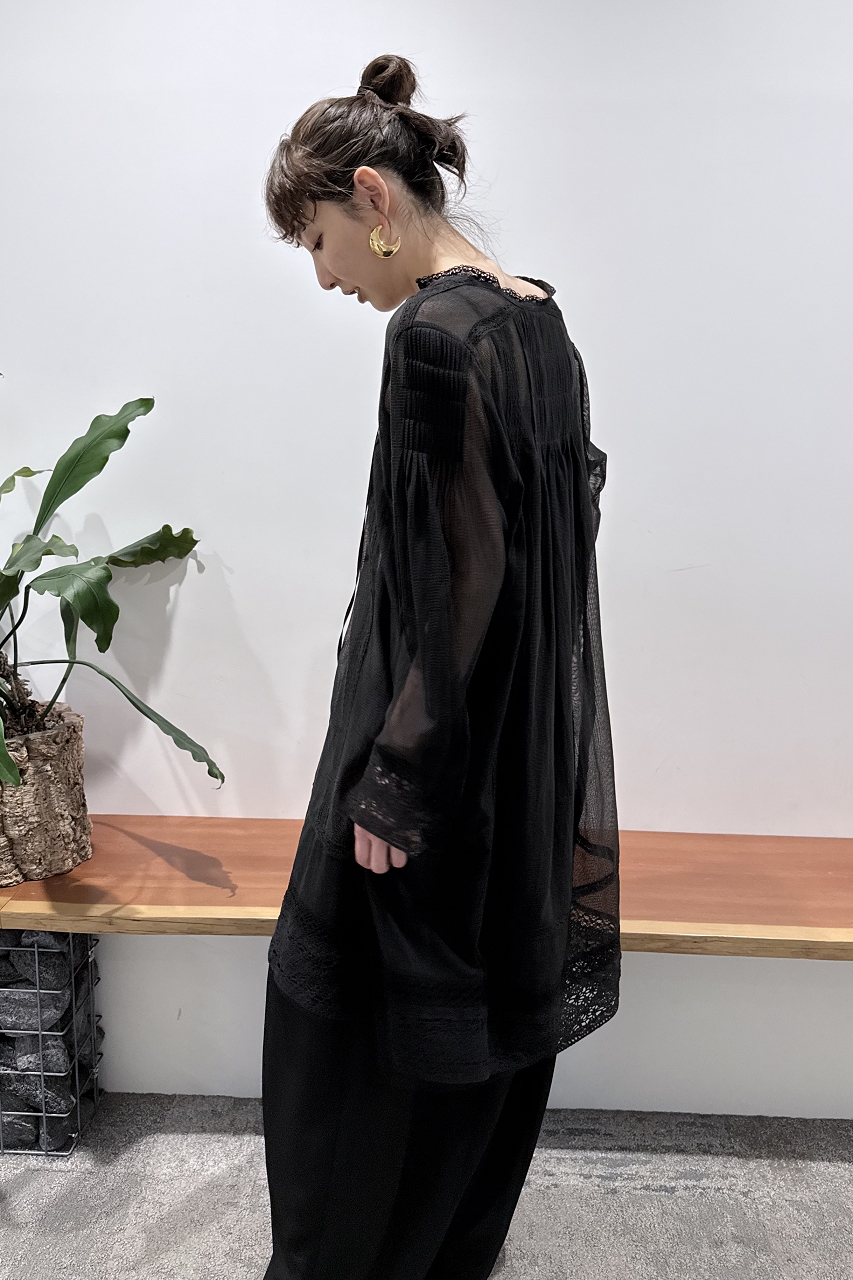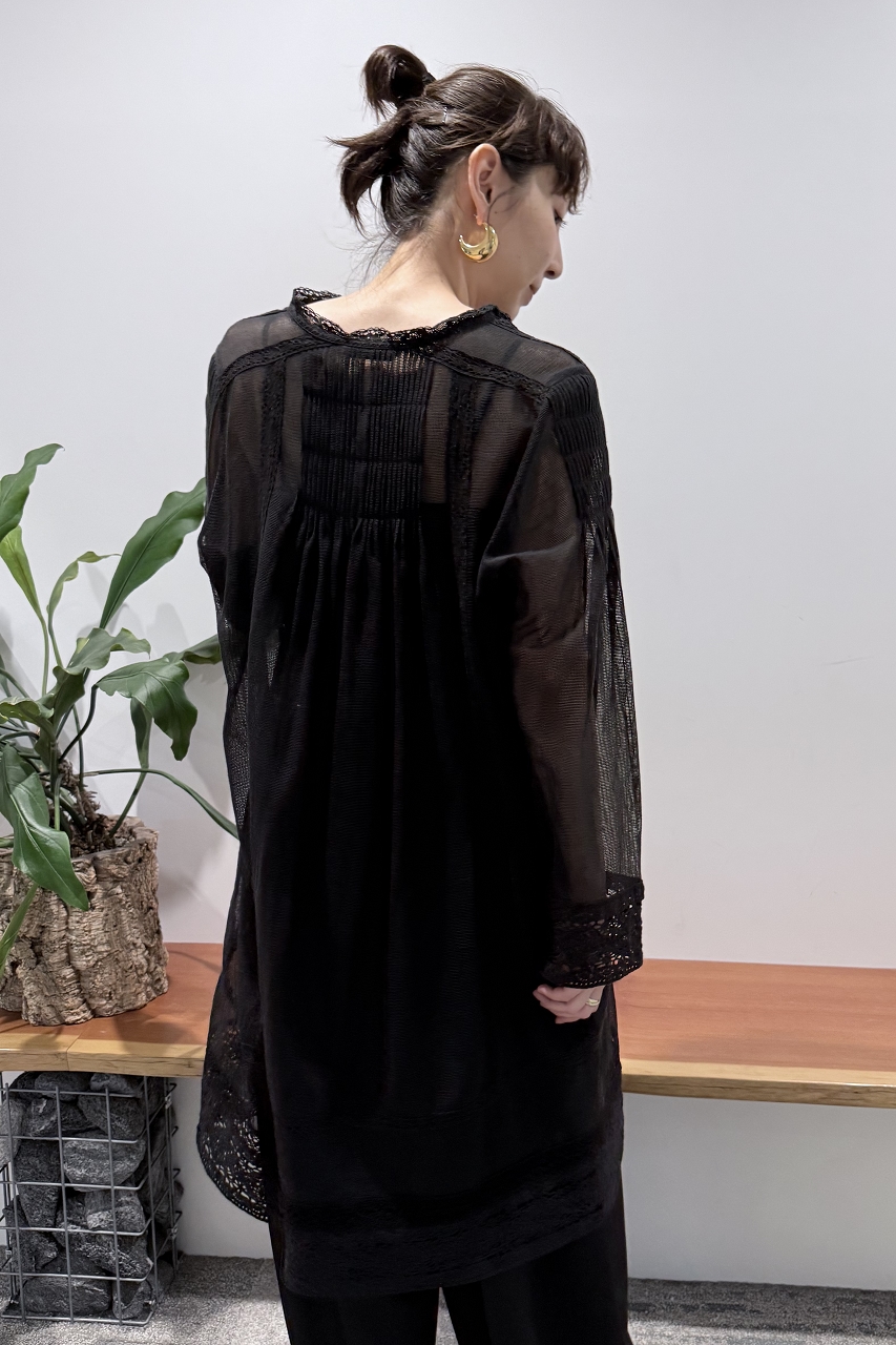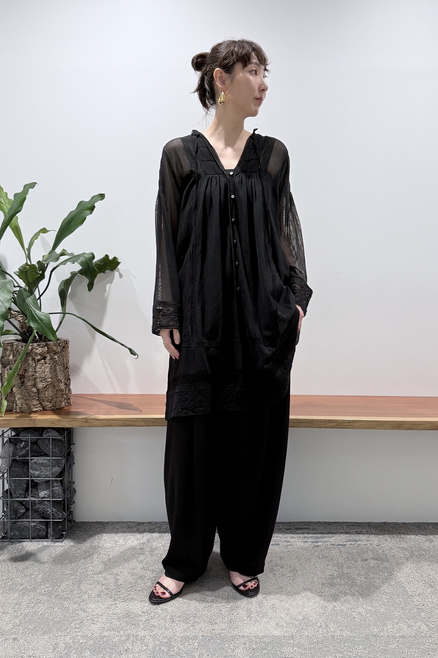 程良い透け感とゆったりとしたシルエットがリラクシーなムードを演出する1着です。