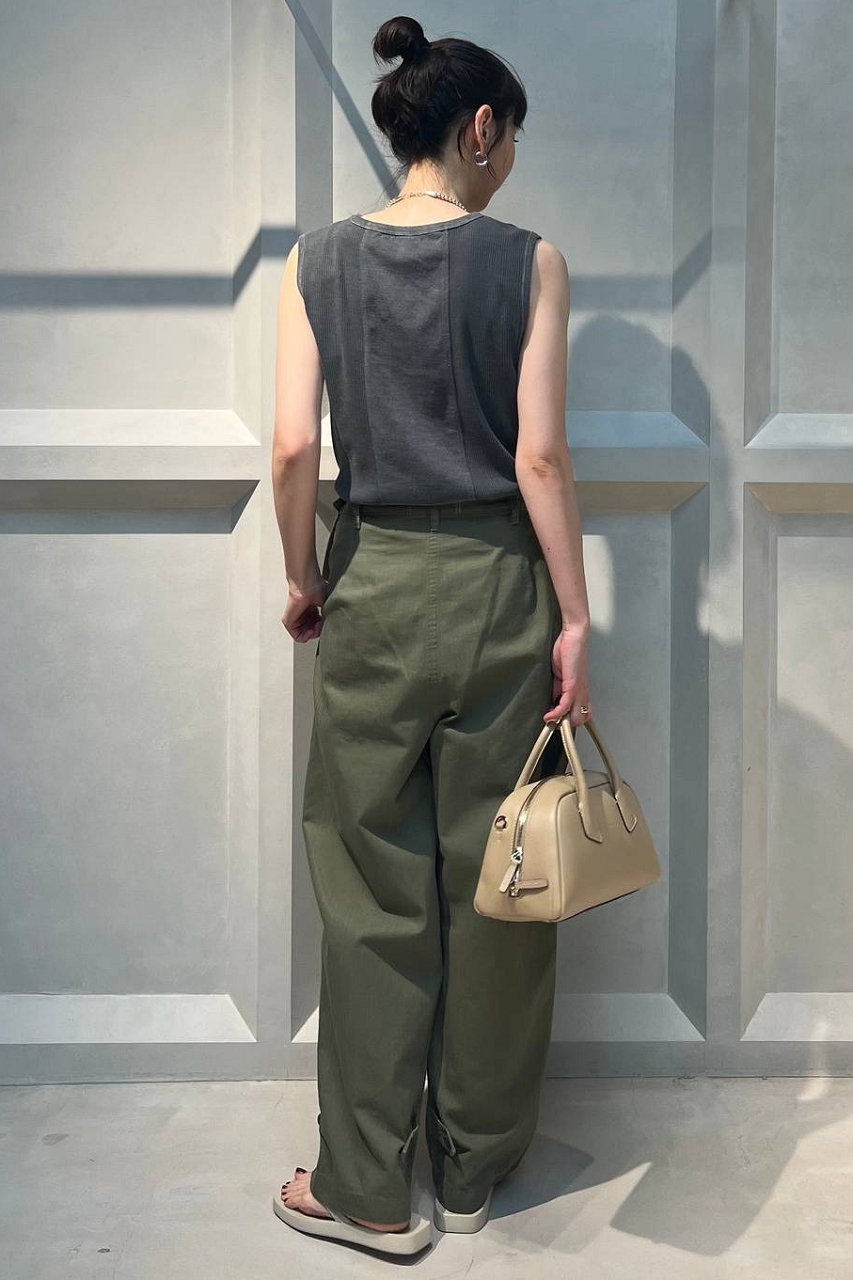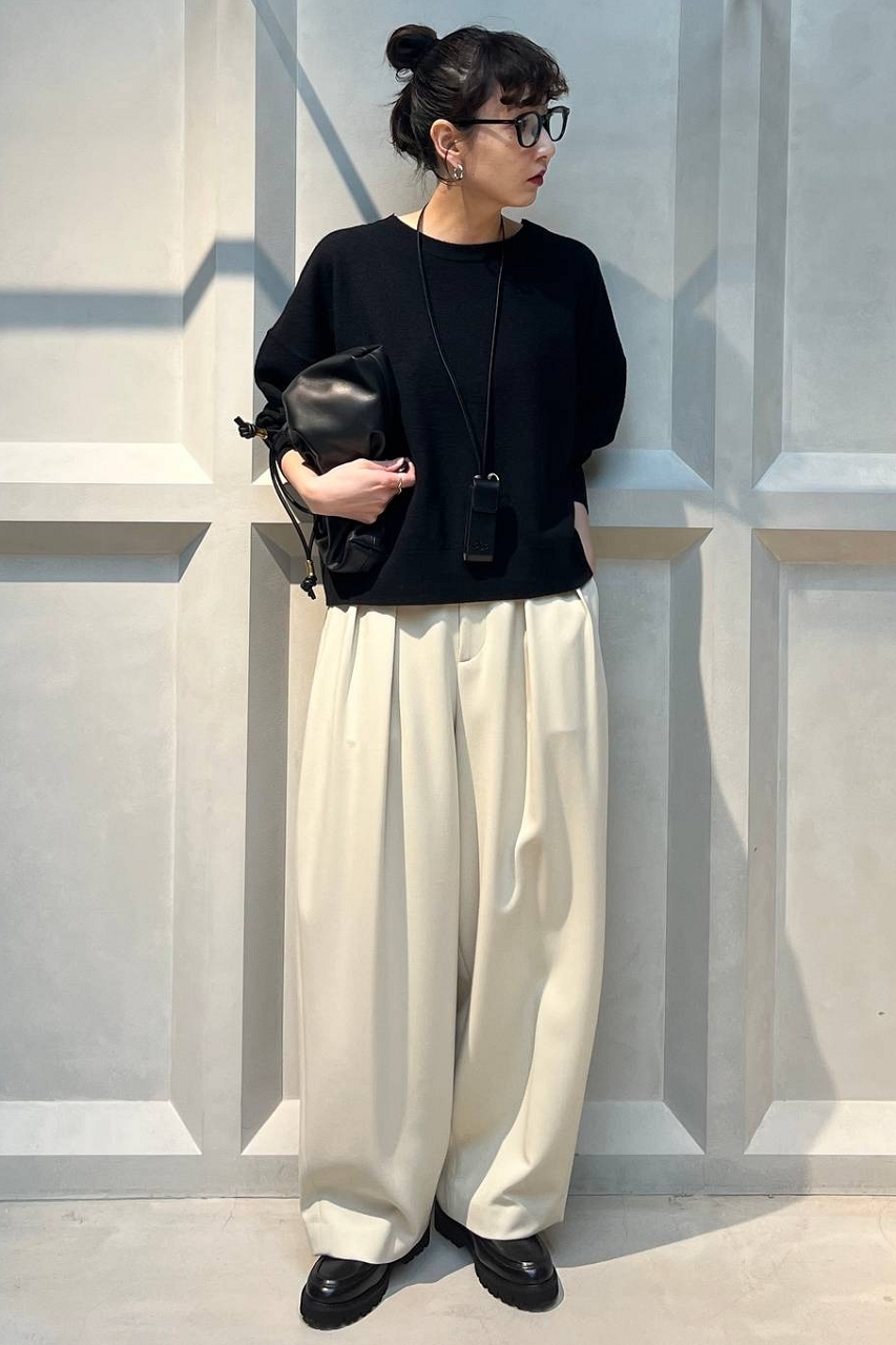 丸みのあるニュアンスたっぷりなフォルムで普段のスタイリングにぐっとこなれ感をプラスする“ダブルクロスツータックパンツ”。