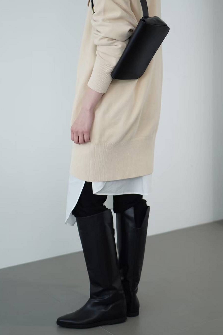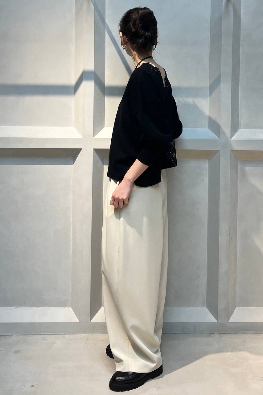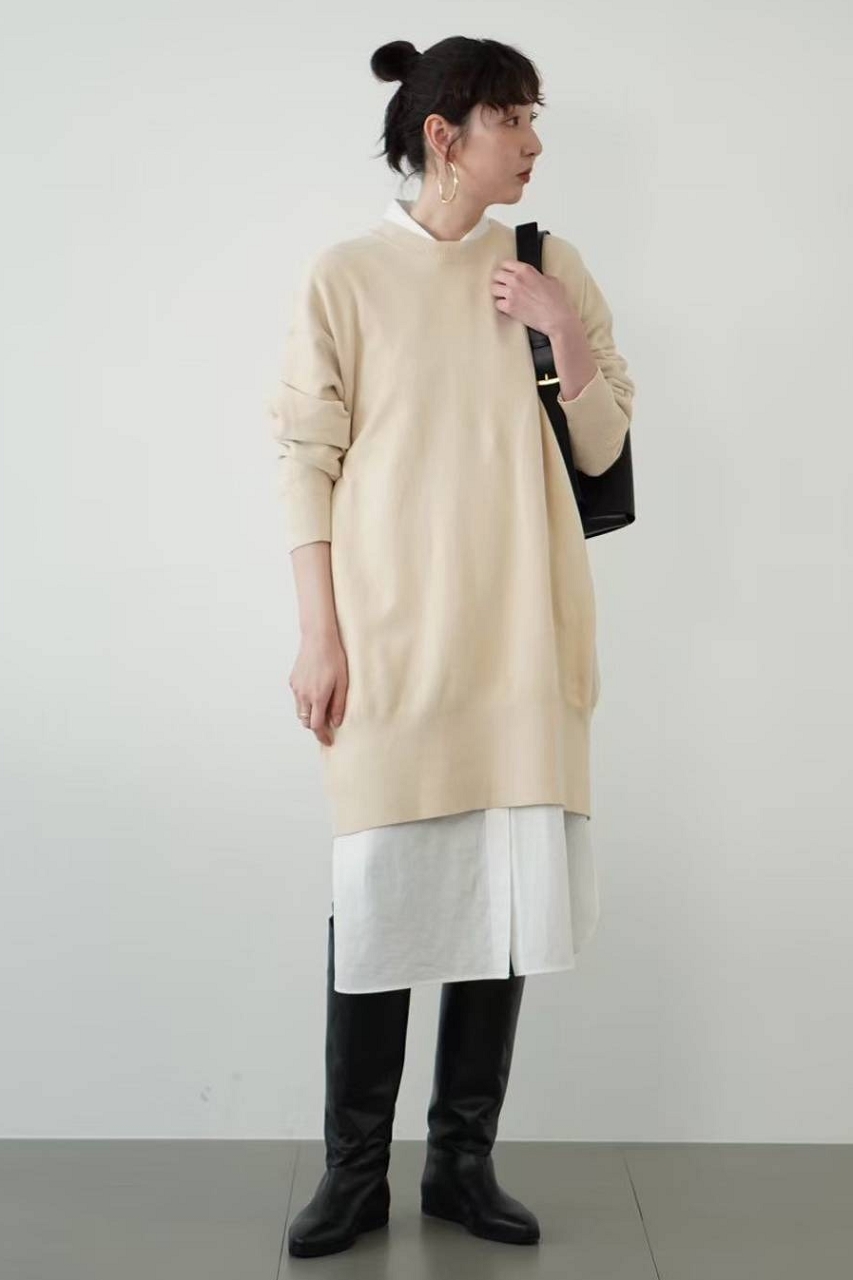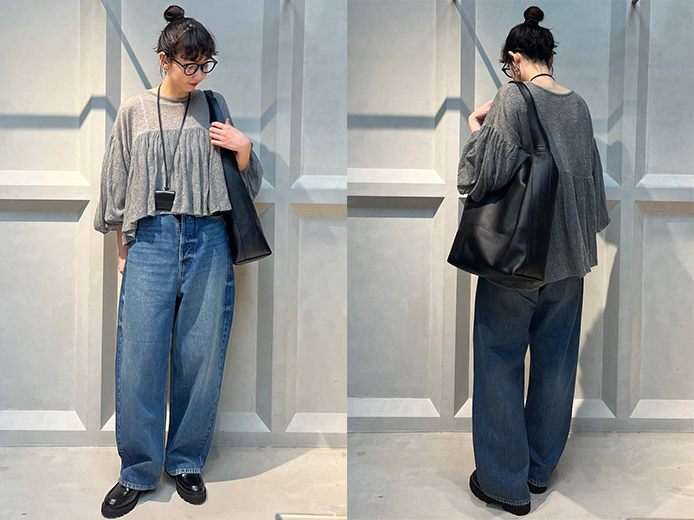 この生地感だからこそ、春や秋の始まりにはTシャツやブラウスと、冬が近づけばニットやスウェットと。