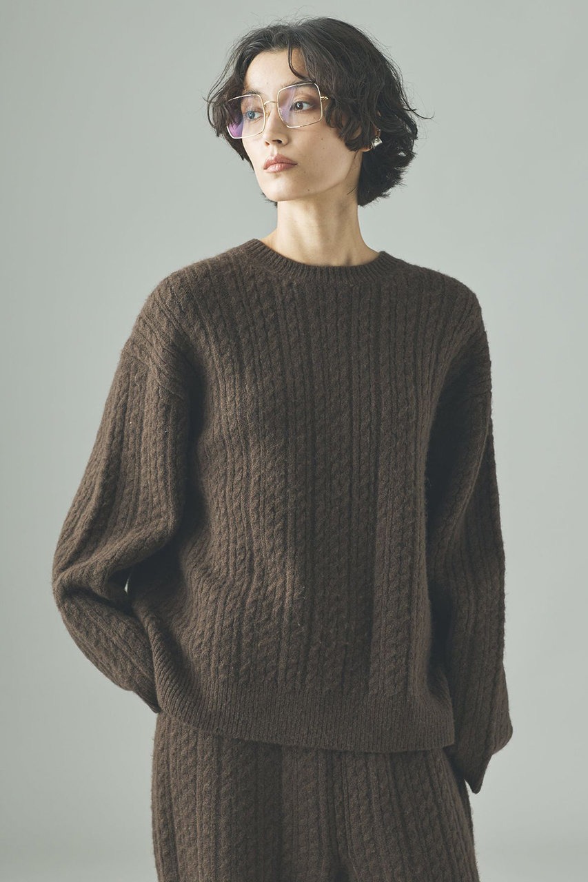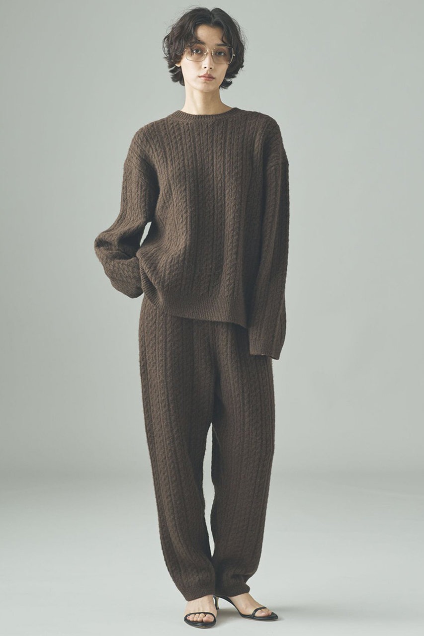 同素材のシャギーケーブルニットパンツと合わせて、セットアップでの着こなしもおすすめです。