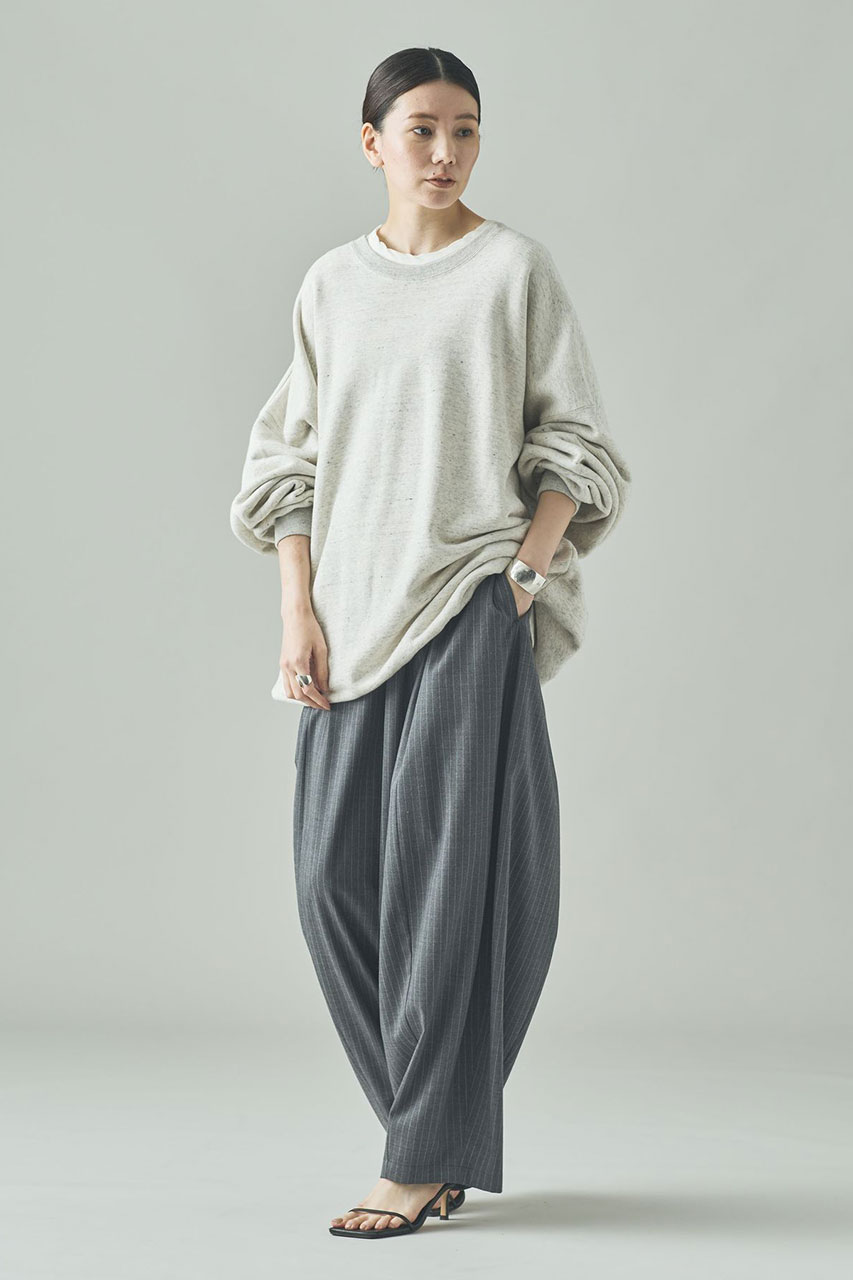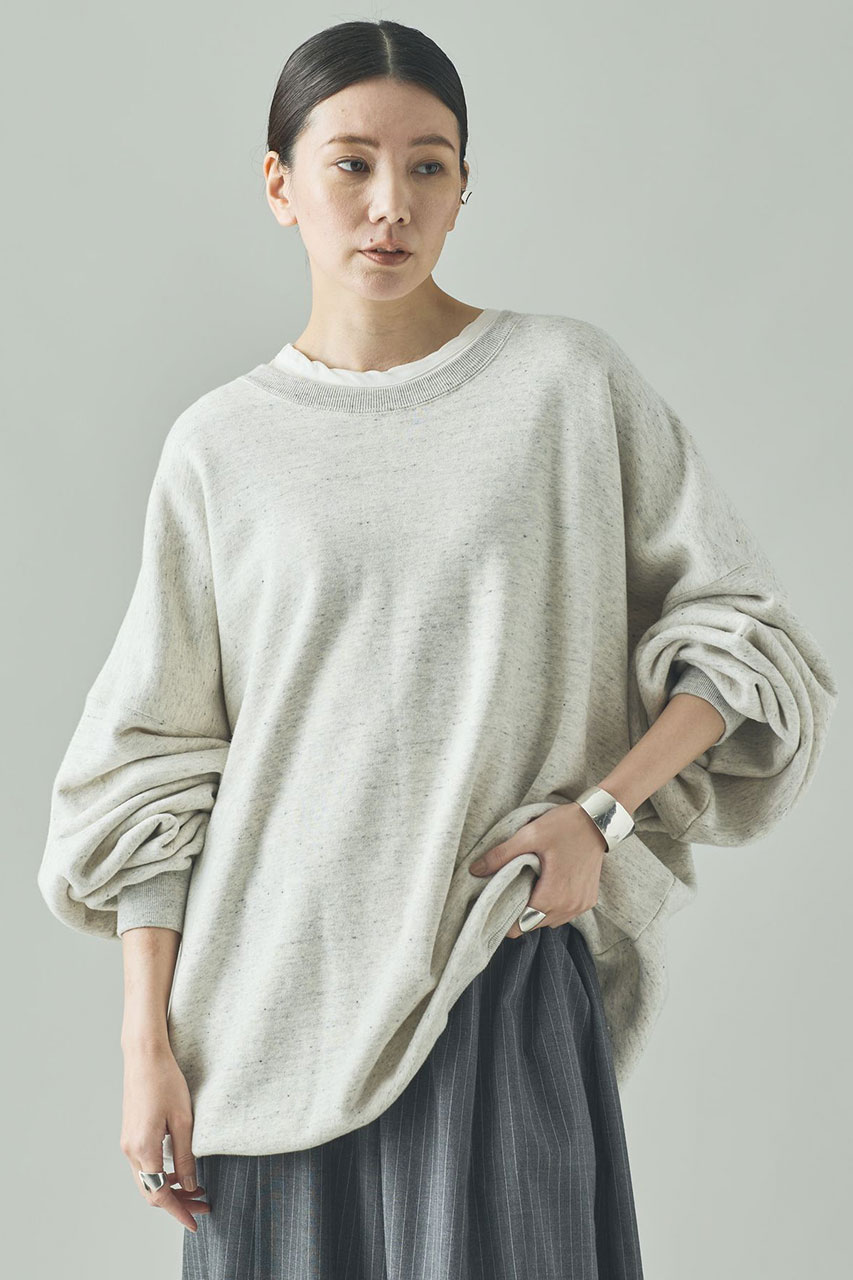 しっかりとした厚みのあるコットン100%の裏毛素材で、体のラインを拾わず秋冬のコーディネートに活躍します。デニムやワイドパンツと合わせてカジュアルに、ロングスカートや上質なパンツと合わせて大人っぽく、幅広いスタイルが楽しめます。