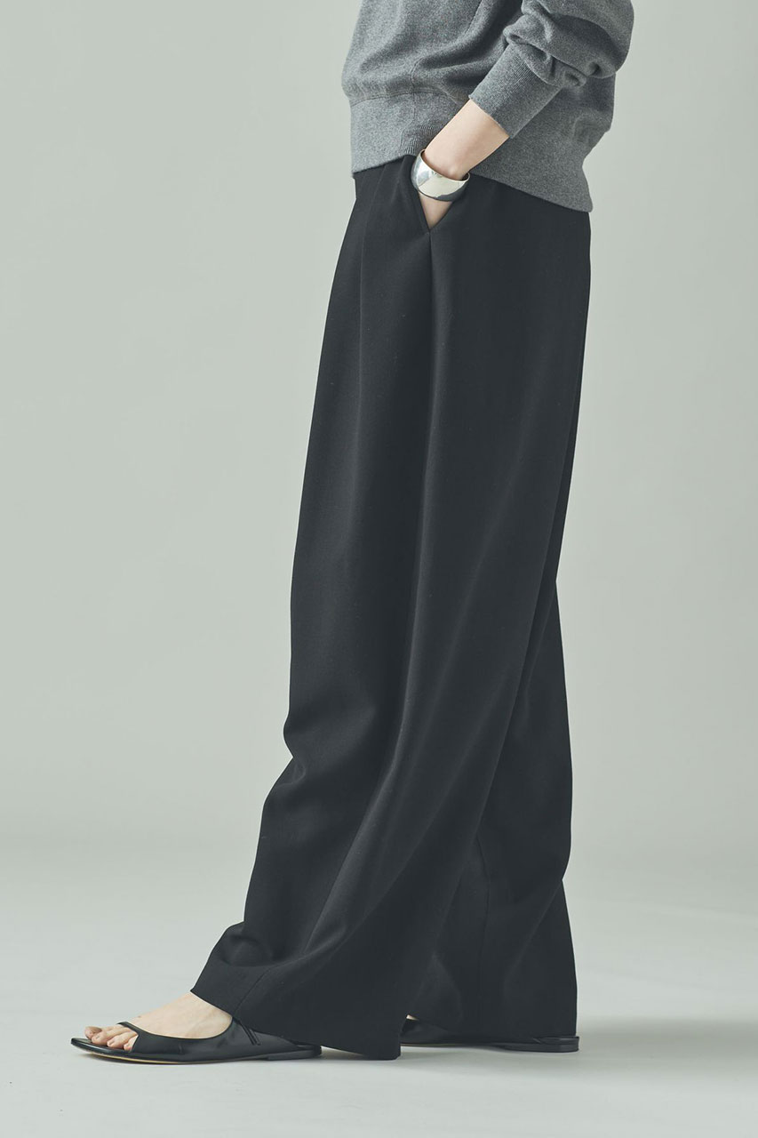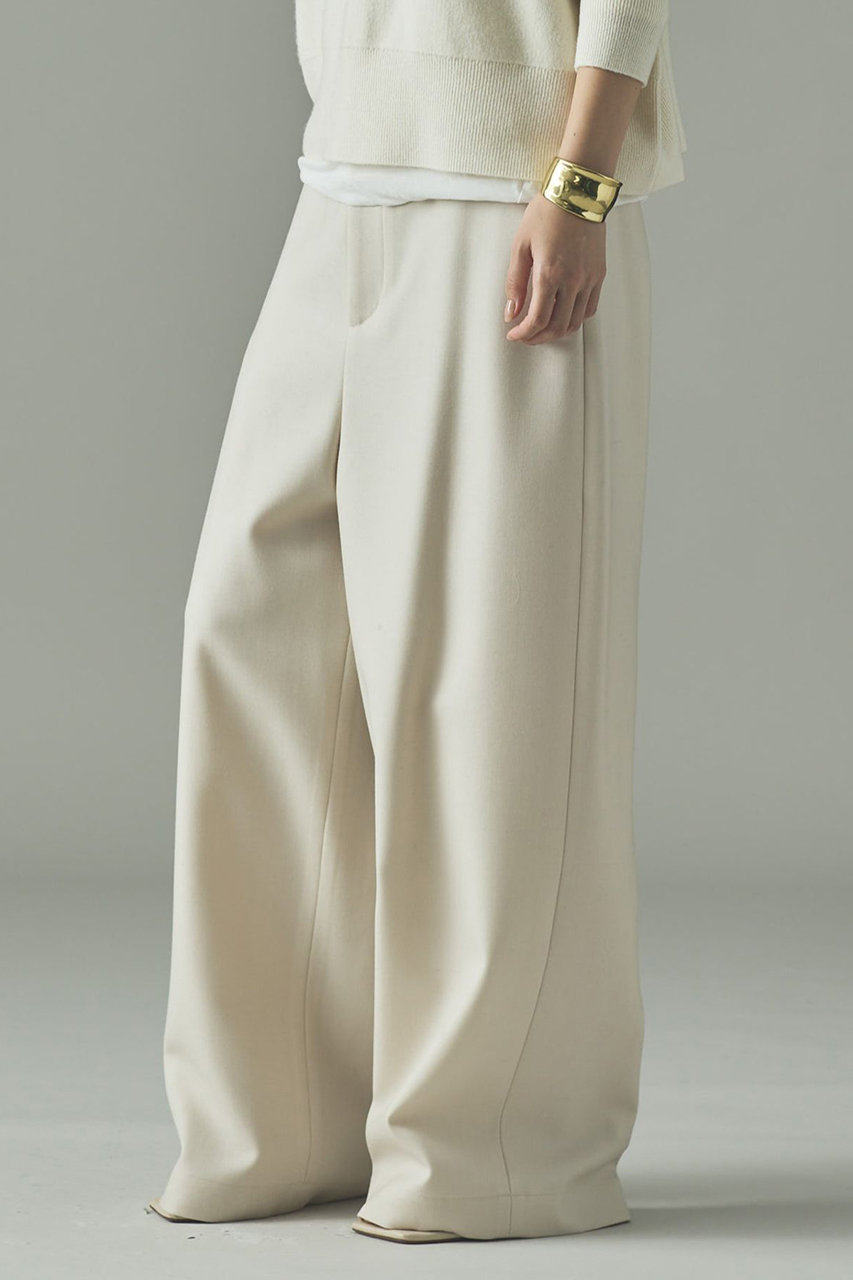 特殊な二重織りで仕立てた、ツータックパンツ。メンズライクなデザインと、丸みのあるニュアンスたっぷりのシルエットが魅力。