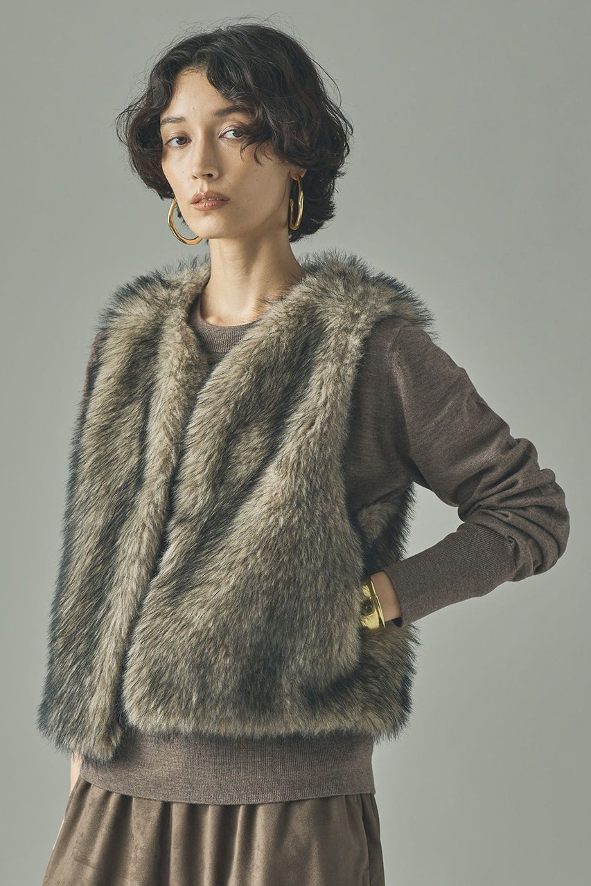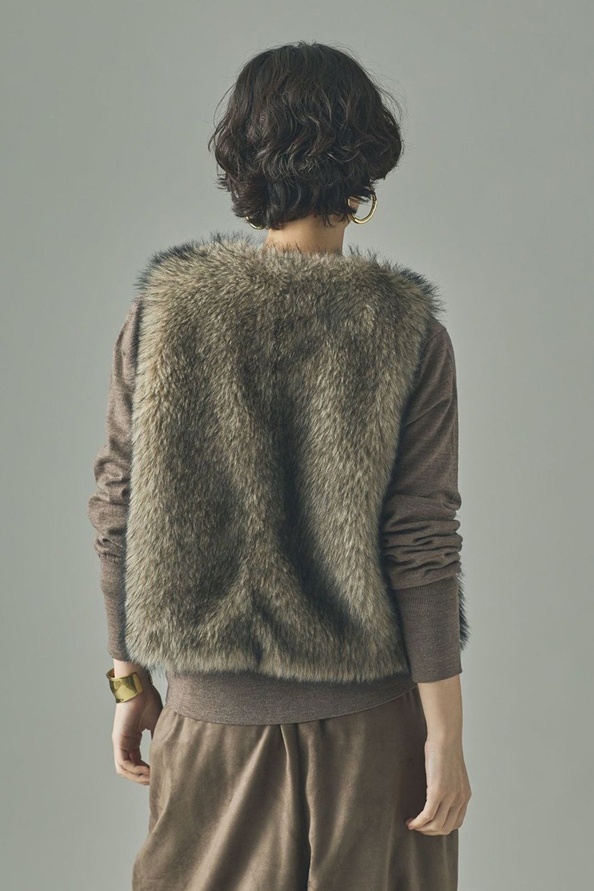 フォックスファーのようなリアルな表情が魅力のフェイクファーベスト