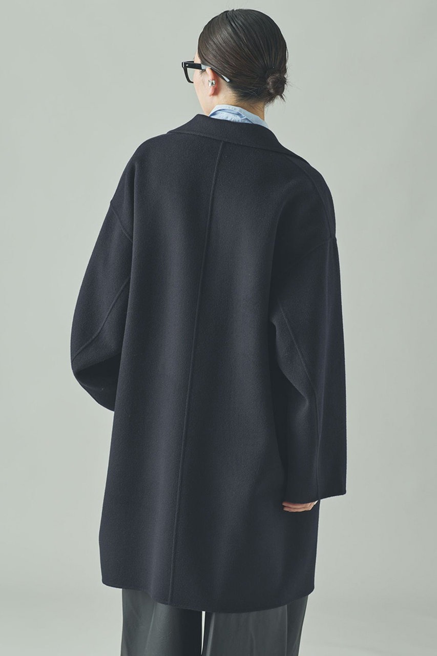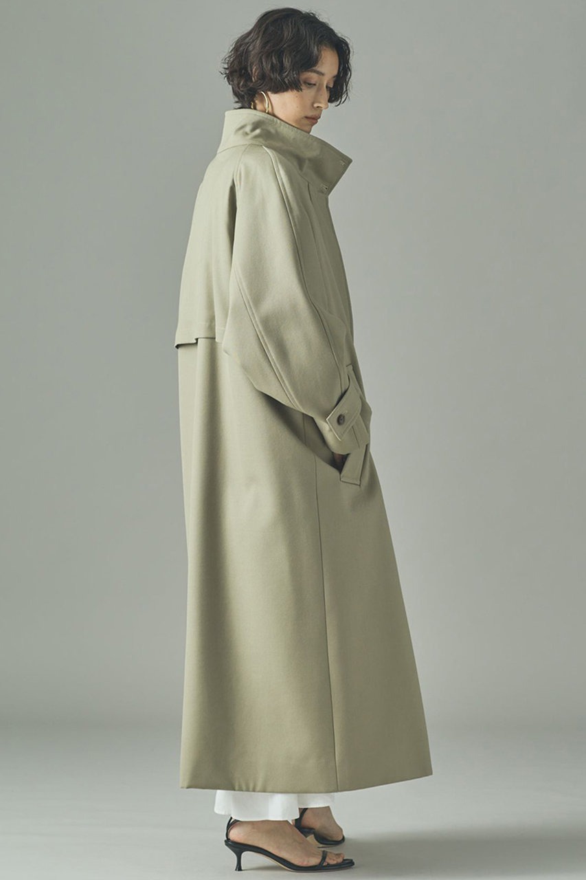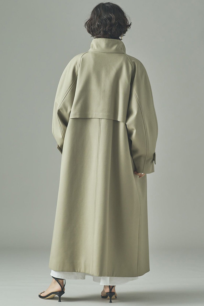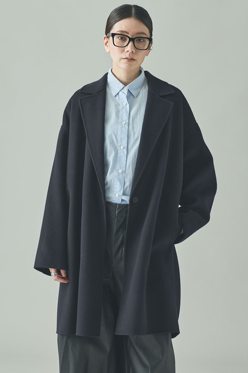 ふっくらとした厚みと独特なハリ感が、立体的な美しいシルエットを演出します。ウールの暖かさを保ちながら、春先まで長く活躍する一着です。トレンチコートのように気軽に羽織ることができ、寒い季節から春先まで、幅広いシーンで重宝します。