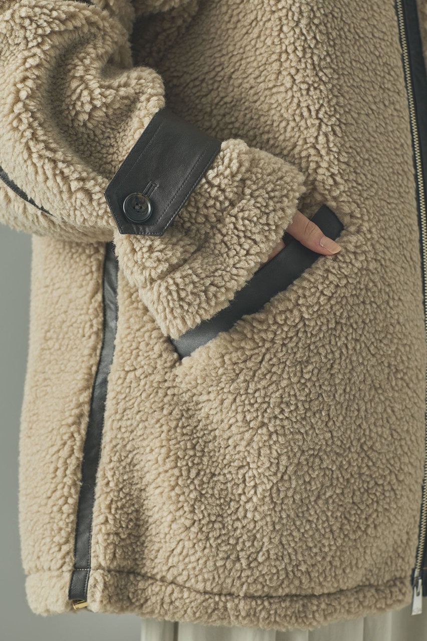 ボリュームのあるボアとフェイクレザーの異素材使いが魅力的なアウター