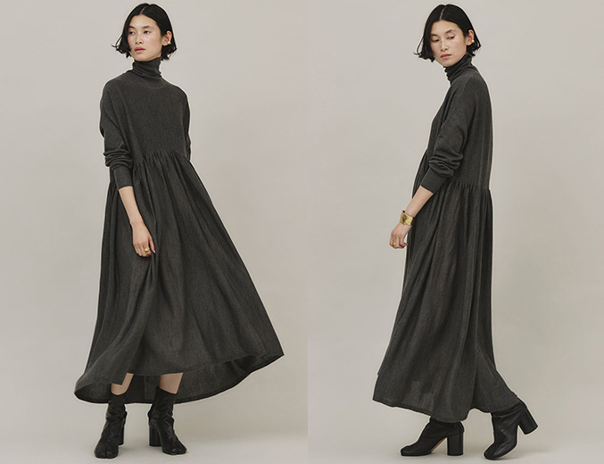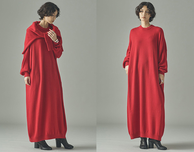 カレンソロジーの冬の定番、ドラマティックなニットワンピース
