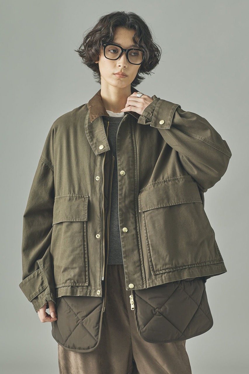 ワークジャケットにインスパイアされたショート丈ブルゾンと、着回し自在な中綿キルティングベストのセット。