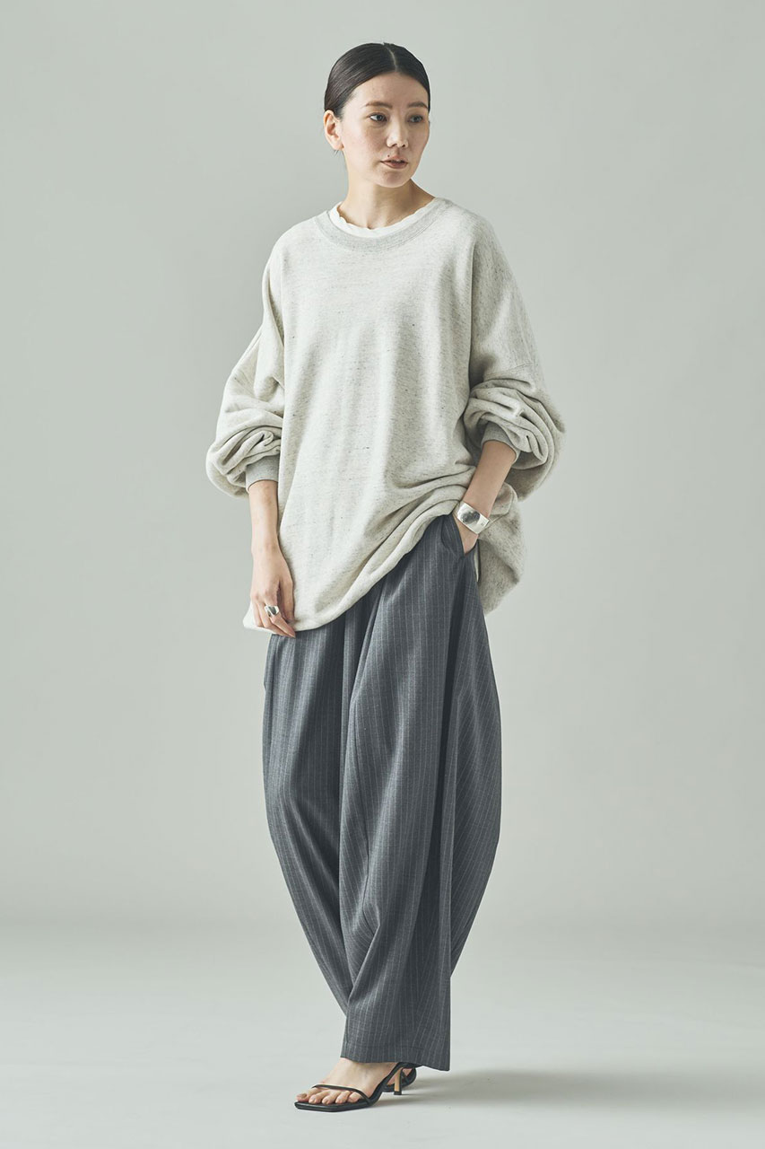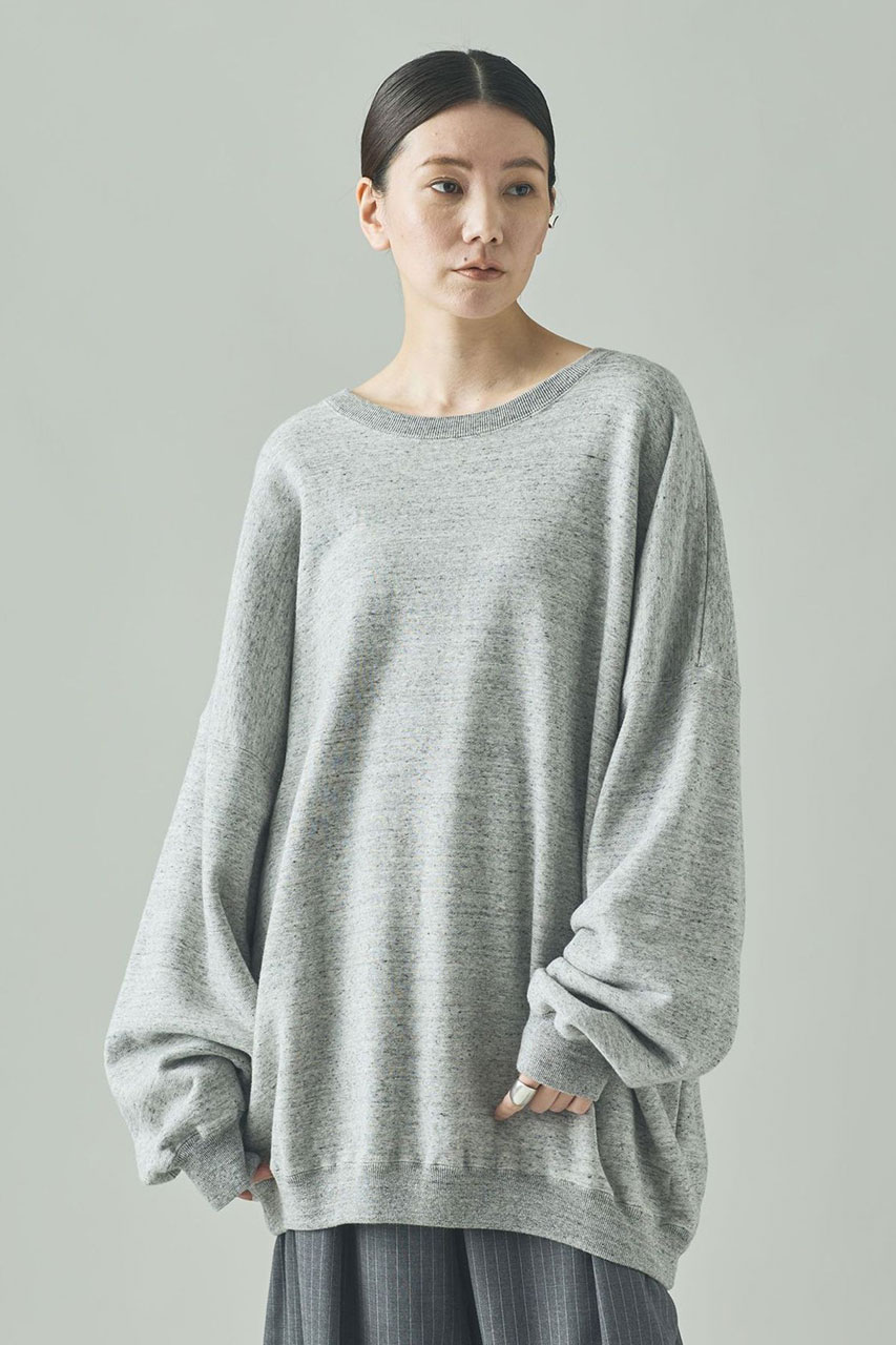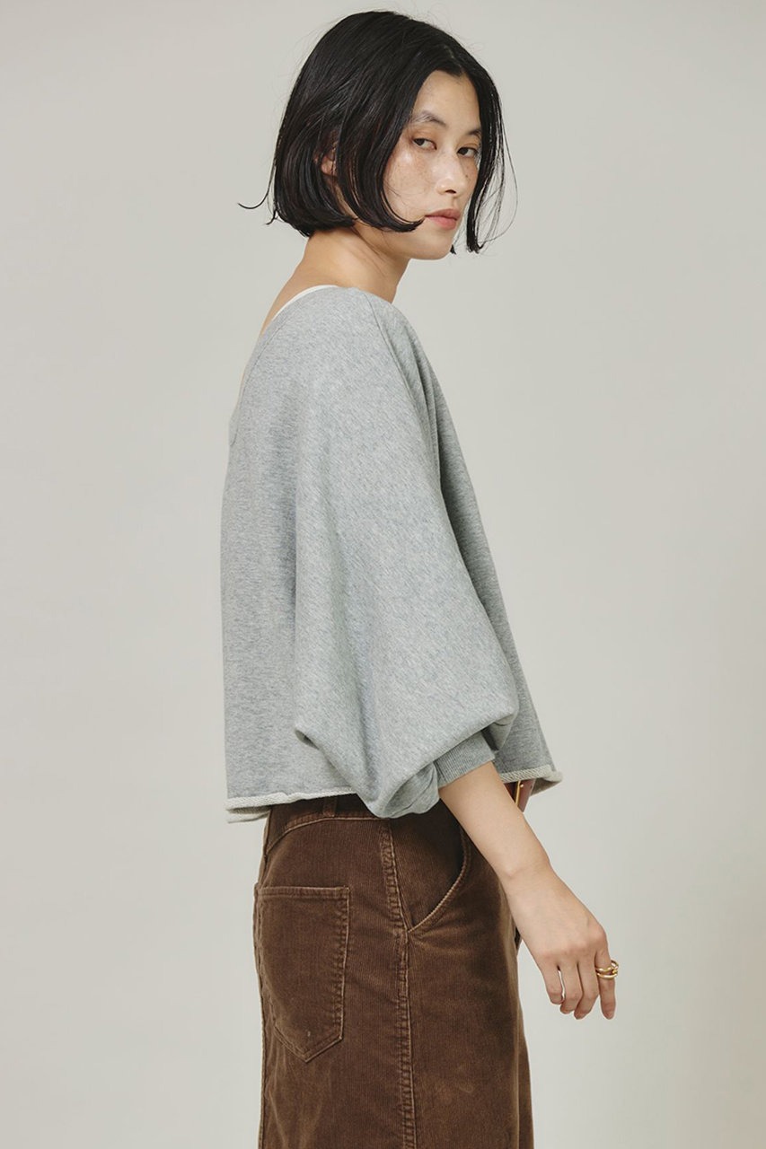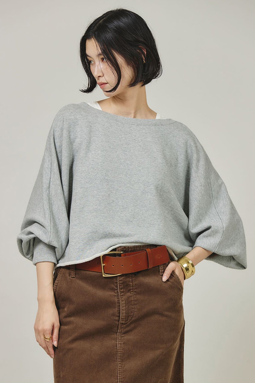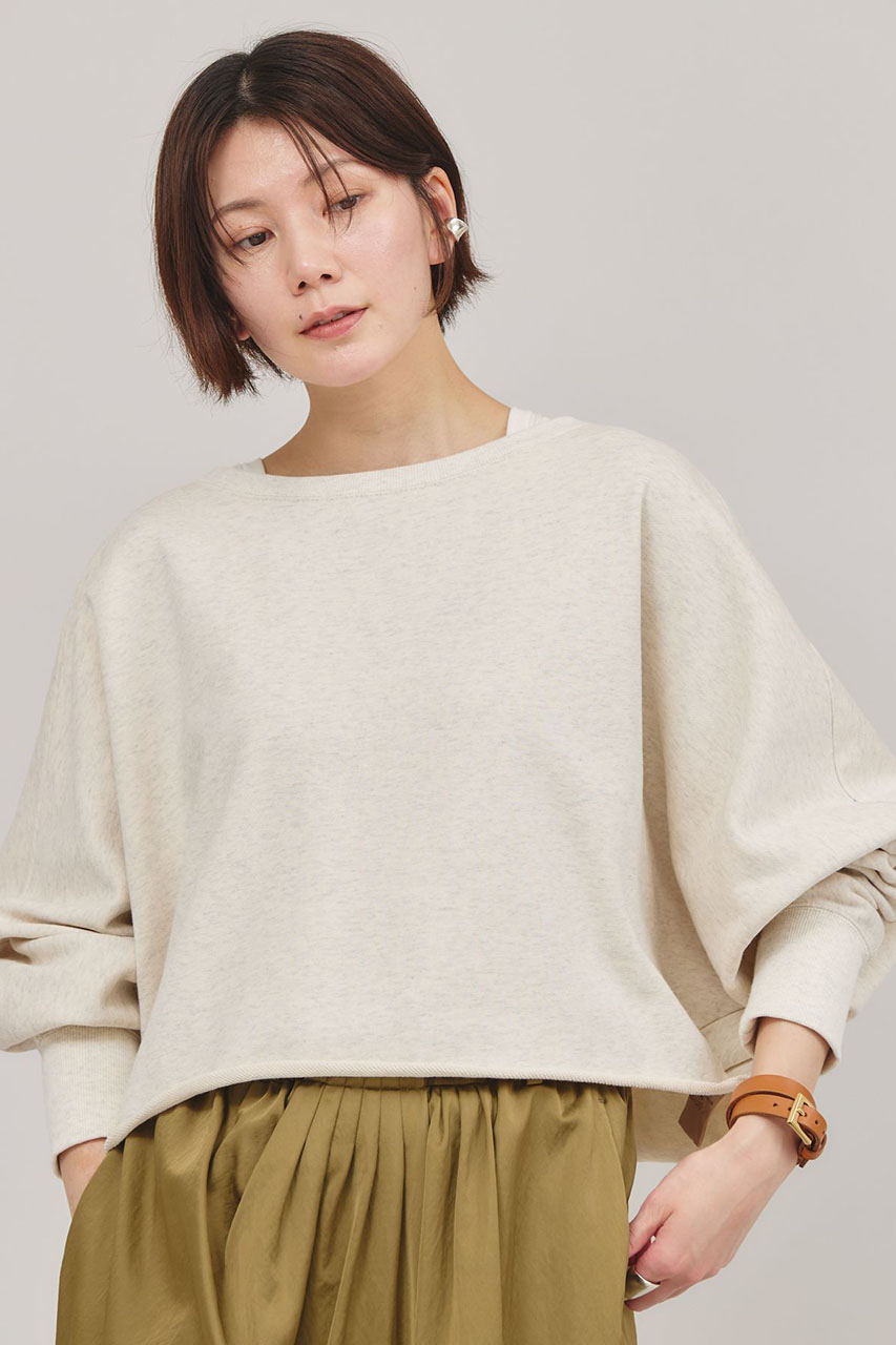 ショート丈とドルマンスリーブで、旬のコンパクトなバランスに仕上げたスウェットプルオーバー。