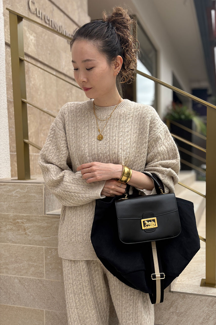 カレンソロジーらしいゆったりとしたサイジングでリラックス感のあるシルエットなので、オフホワイトならニットでも洗練された印象になります♪シンプルながらも表情豊かなニットはウール混のストレッチ素材を使用しており、動きやすく着心地が抜群。ケーブルの立体感で高い保温性も兼ね備えているので真冬まで長く着ていただけます。ラフになりすぎないようにブラックの小物を取り入れると◎