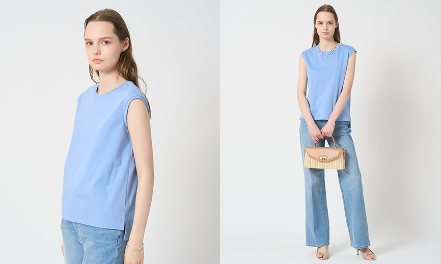1枚でボトムスインしても、アウトにしても様になるように適度なゆとりと襟元の開きにこだわりました。