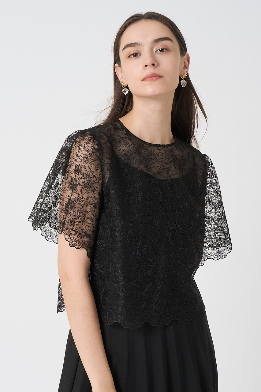 裾と袖口がスカラップ使いになった華やかなTブラウスです。