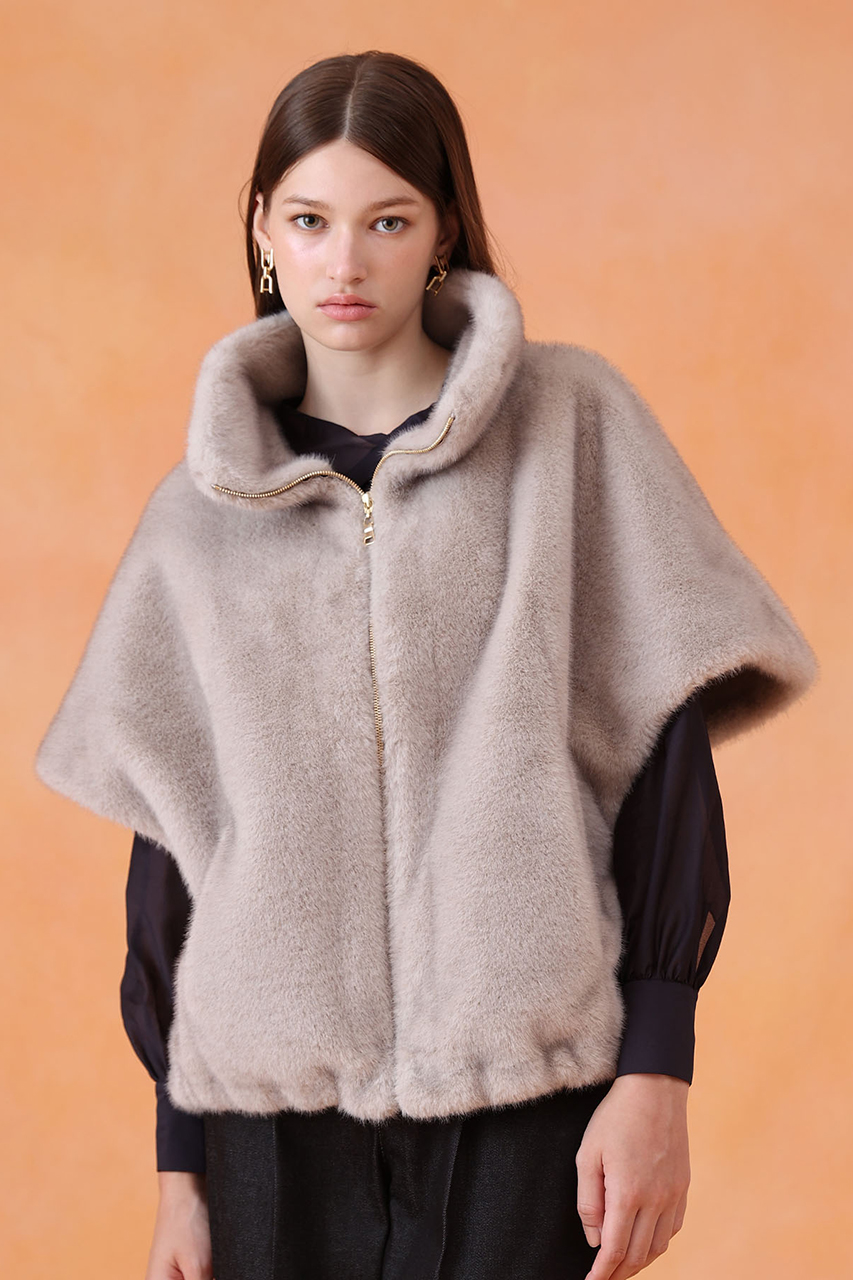 リアルファーのような見え方のフェイクミンク素材を採用。