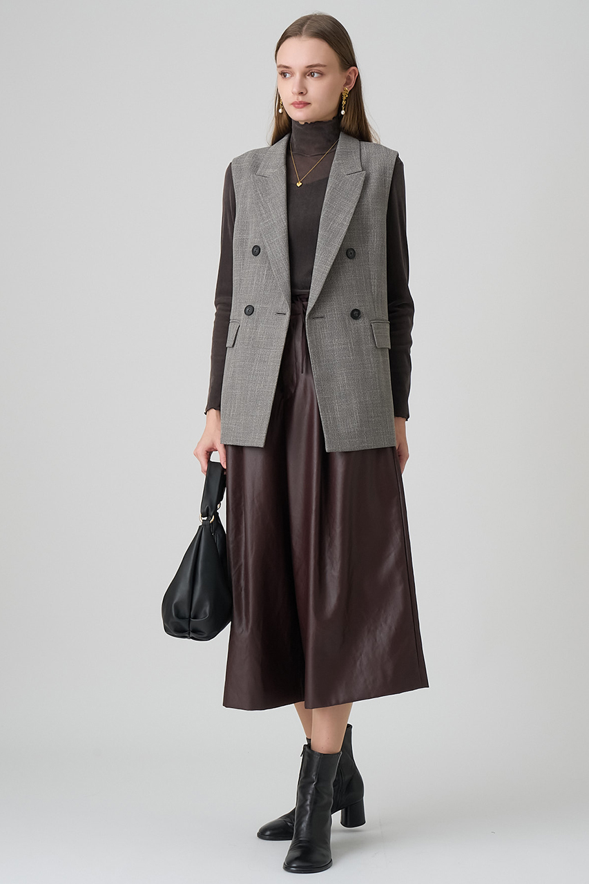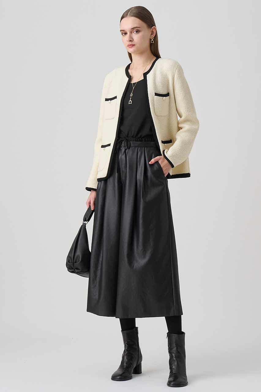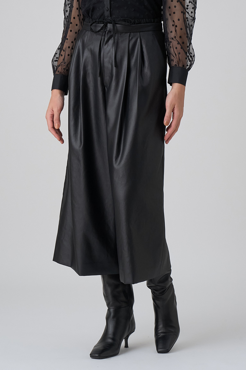 程よい艶感でニットや異素材との組み合わせもしやすく、フェミニンに着こなして頂きたいアイテム。
