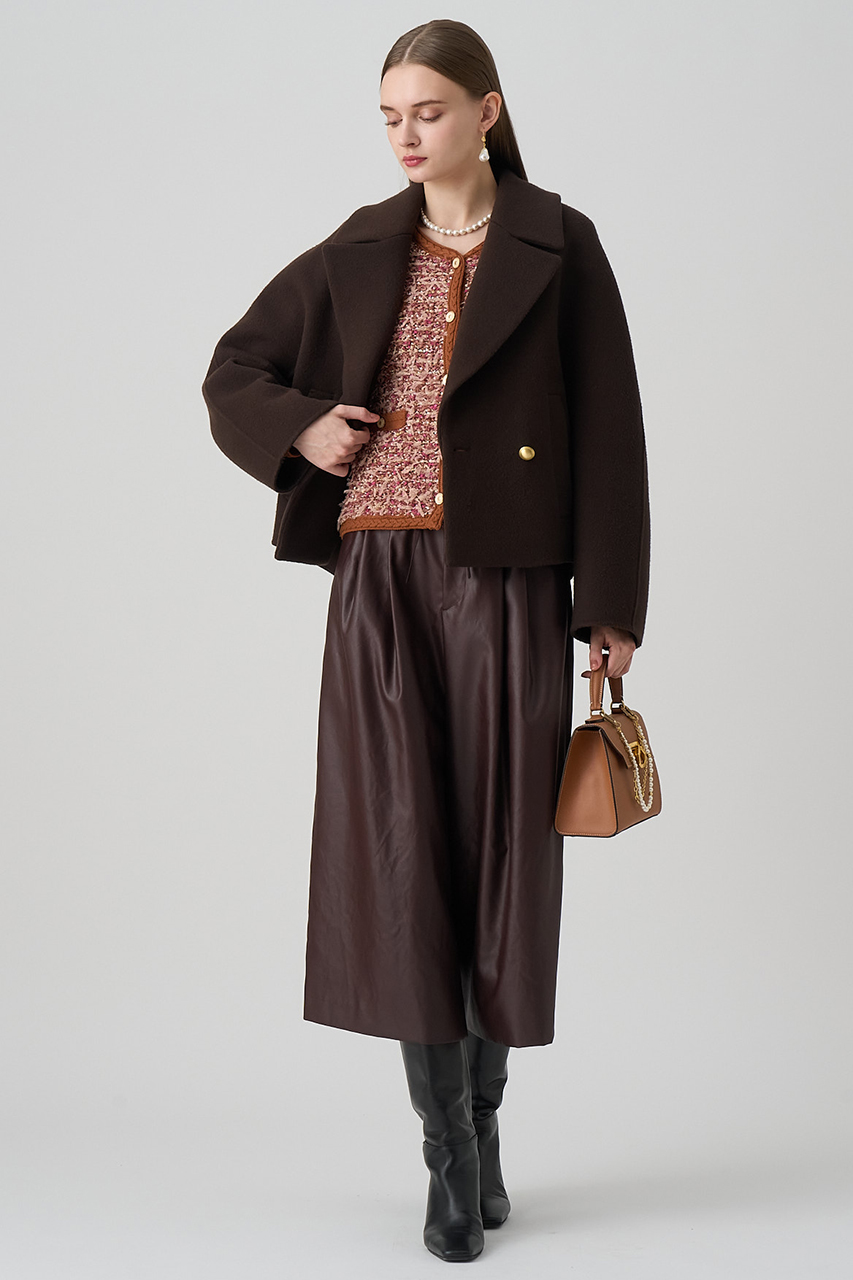裏側がボアの優しい着心地で、パンツスタイルにお勧めのハーフコートです。