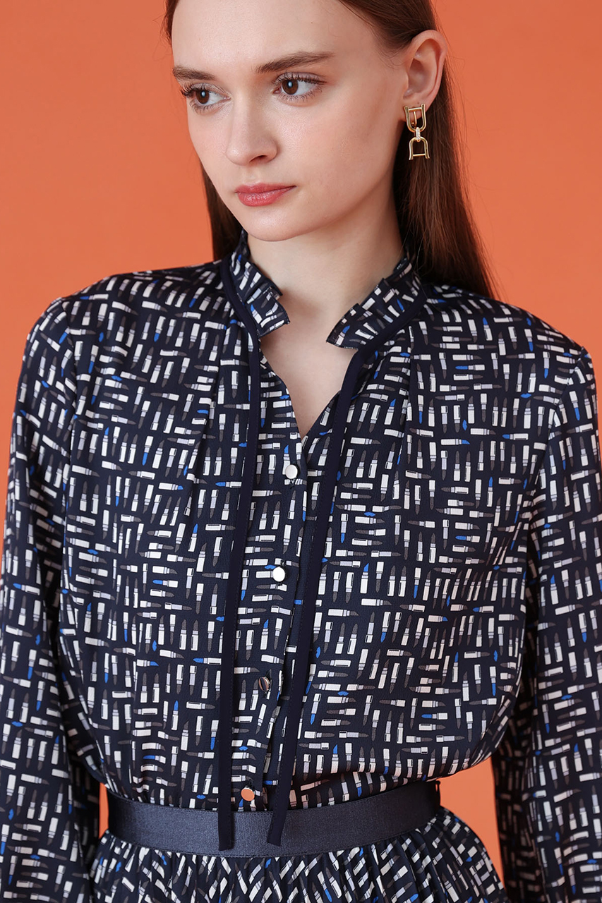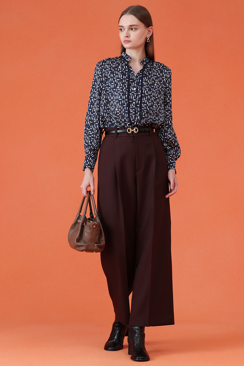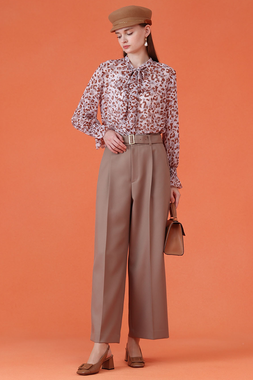 華やかなボウタイブラウスは、一枚仕立で軽く仕上げたタイがポイント。ふわりと軽やかなリボン結びでエレガントに決まります。