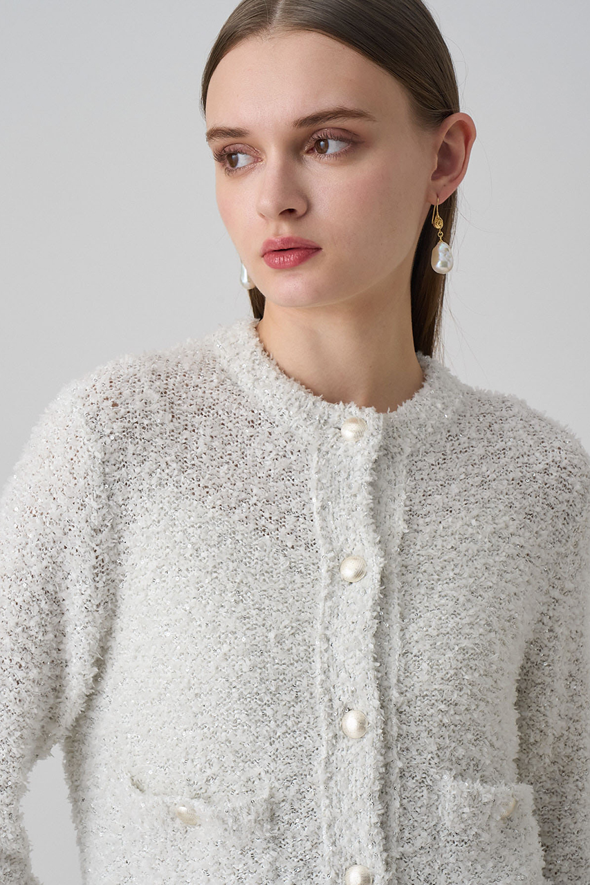 イタリアのツイードを参考にしながら、6種類の意匠糸を組み合わせ、カラフルで繊細な立体感が楽しいツイードニットに仕上げました。