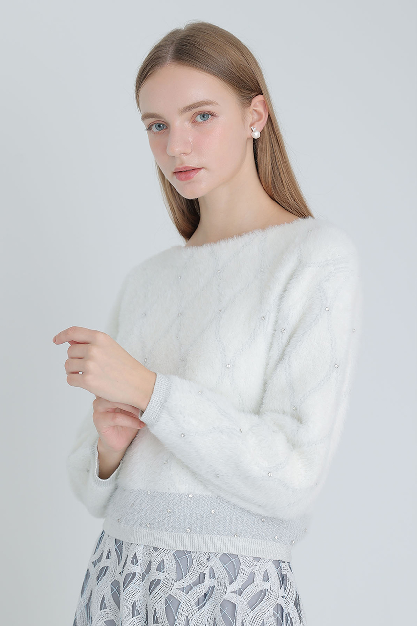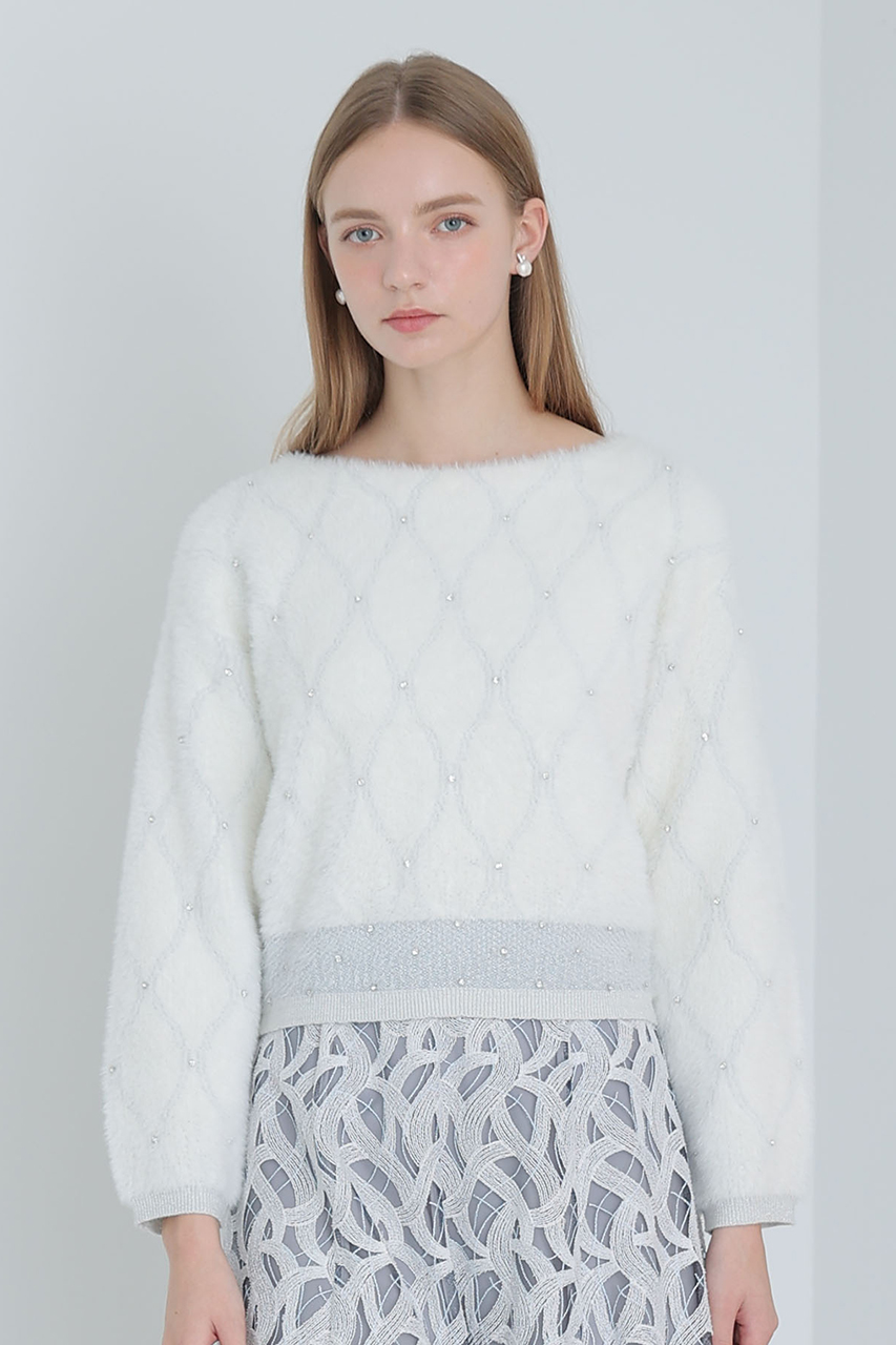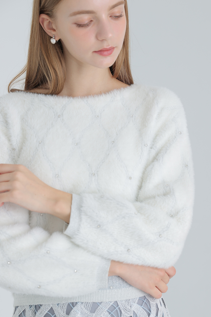ふわふわとしたデザインと着心地はホリデーシーズンにぴったりの1枚。