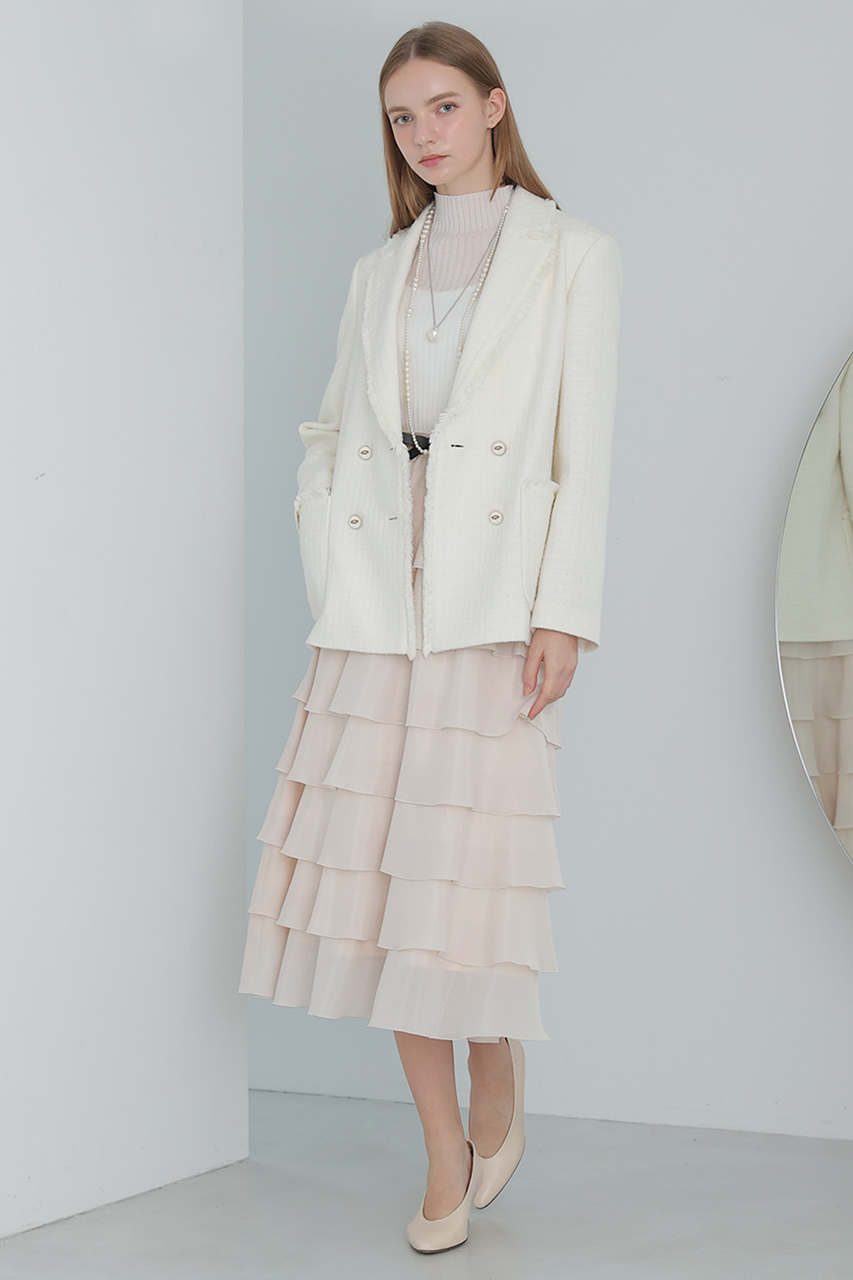 格子の柄のツイードで、立体感のある柄ですが、ワントーンなのでシンプルな見え方が上品。