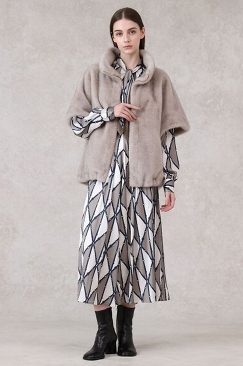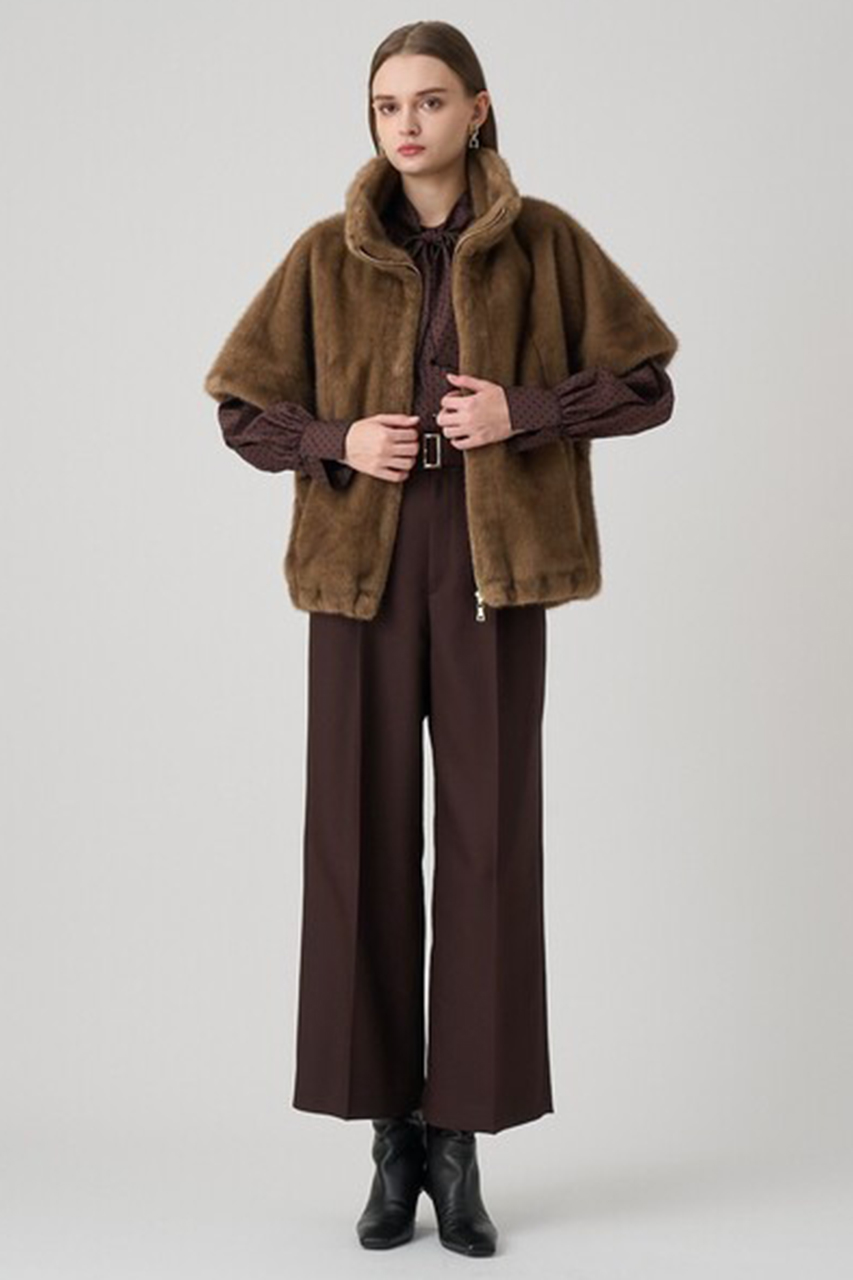 軽く、キレイ目にカジュアルダウンできるフェイクファーアイテムはスタイリングに抜け感をプラスしてくれるのでお勧めです。