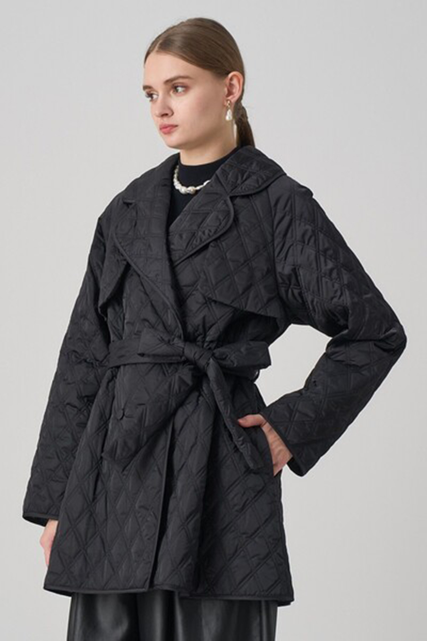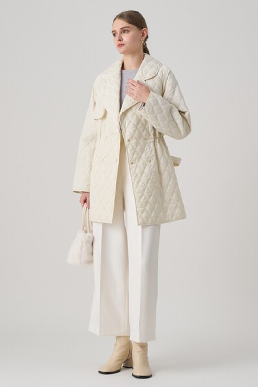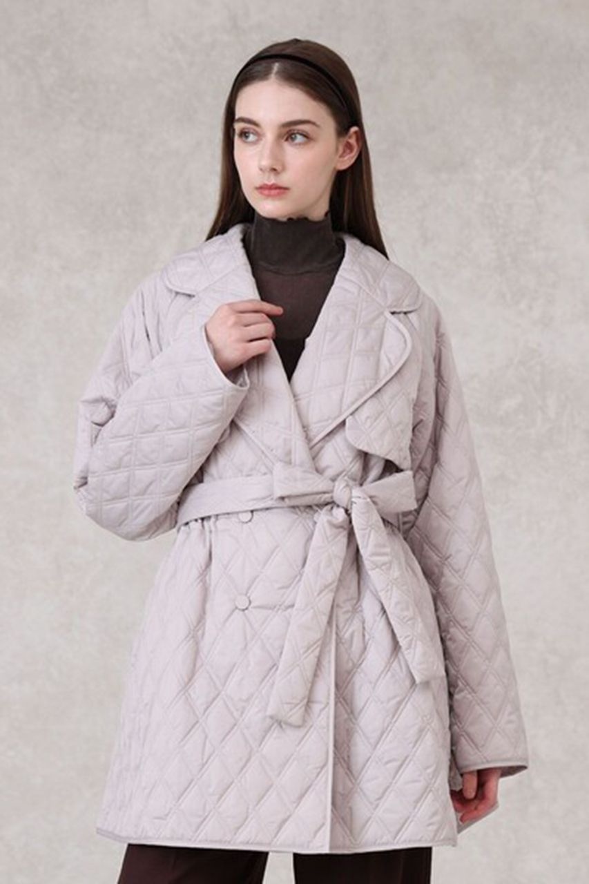 テーラー衿やフラップディテールを落とし込んだトレンチライクなキルティングコート。