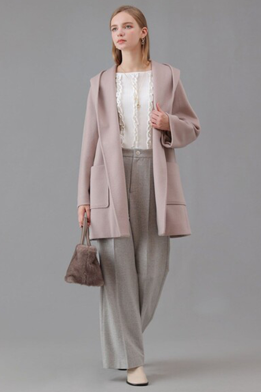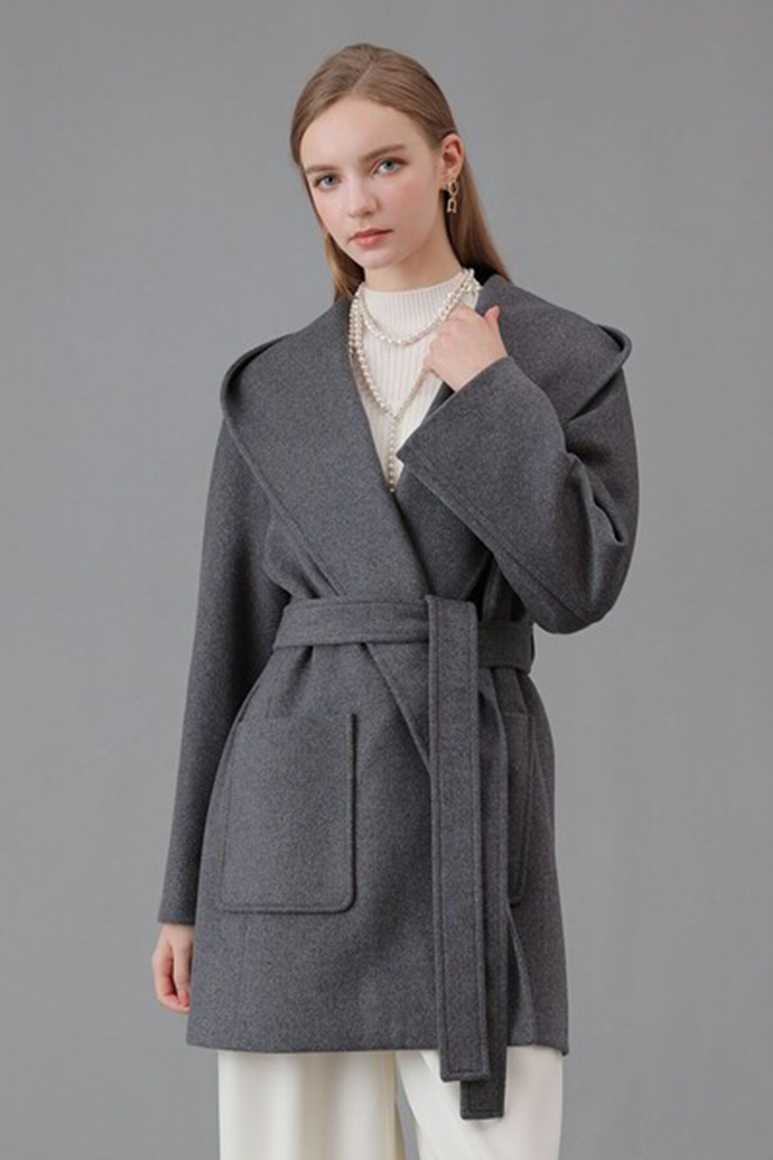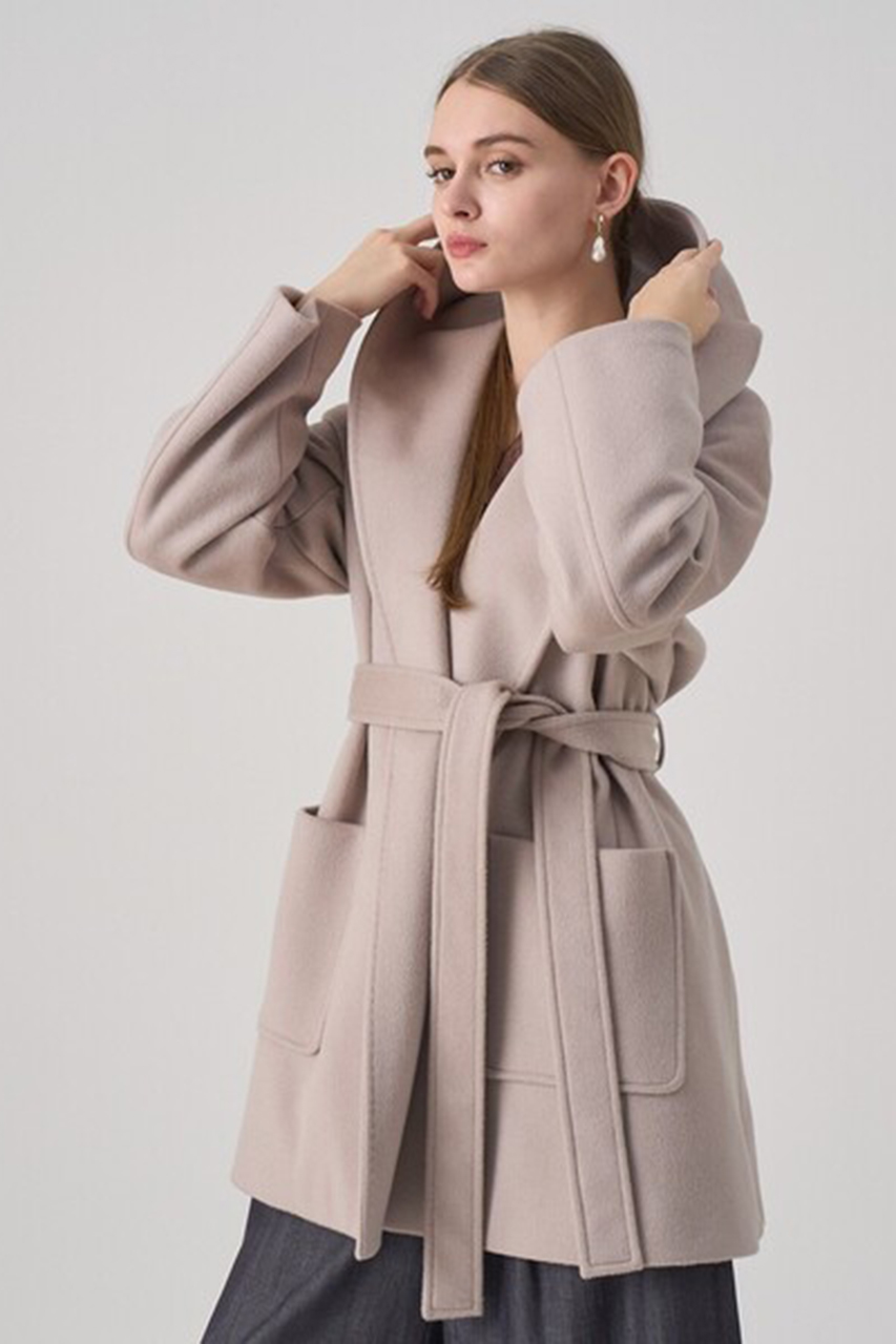 《カシミヤ混フードガウンコート》