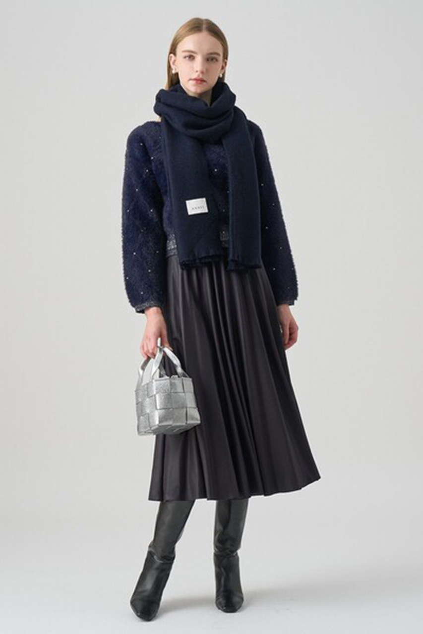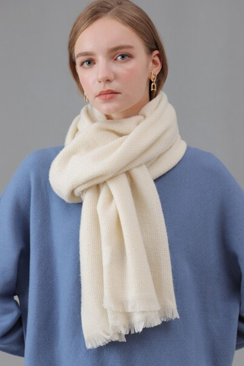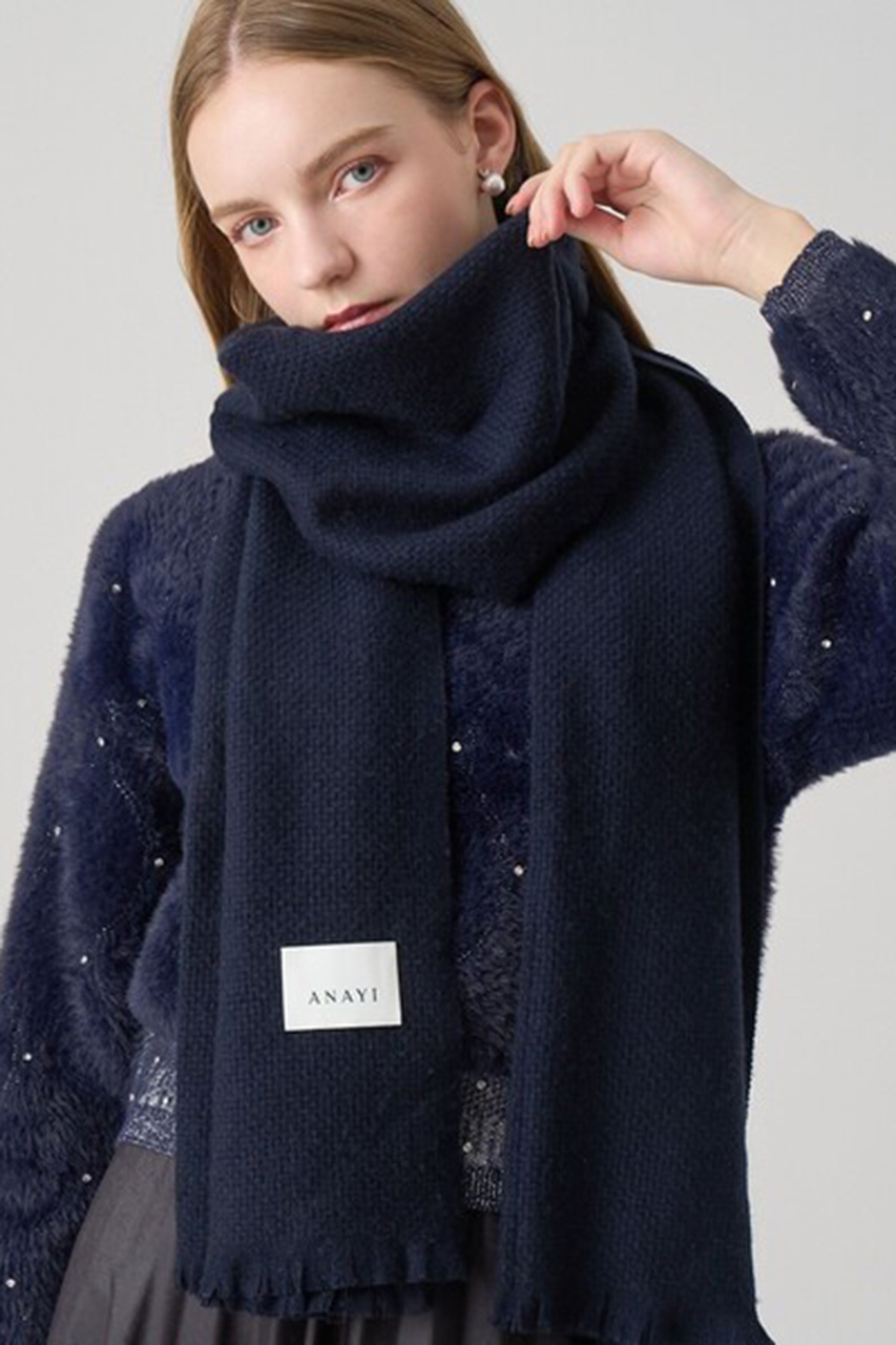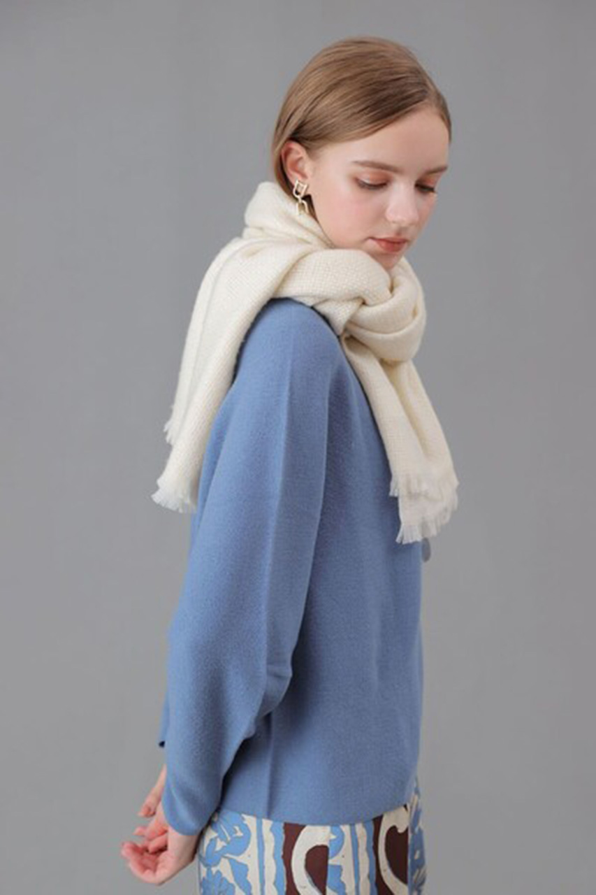 凹凸感のある素材感がポイントの単色でコーディネートをしやすい万能なストールです。