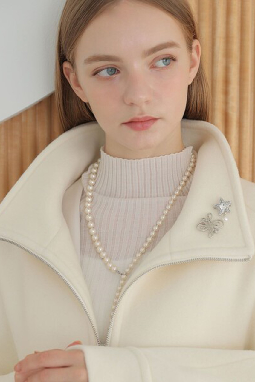 ジャケットやアウターの袖に付けたりニットの胸元に、セットでも単品でも様々なコーディネートが可能なデザイン。
