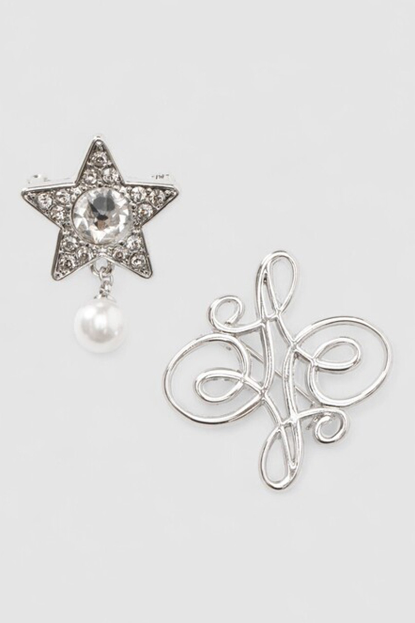Veronica Halim氏によるカリグラフィーで表現されたオリジナルロゴモチーフと輝きの深い石とパールを用いたスターモチーフのブローチのセット。
